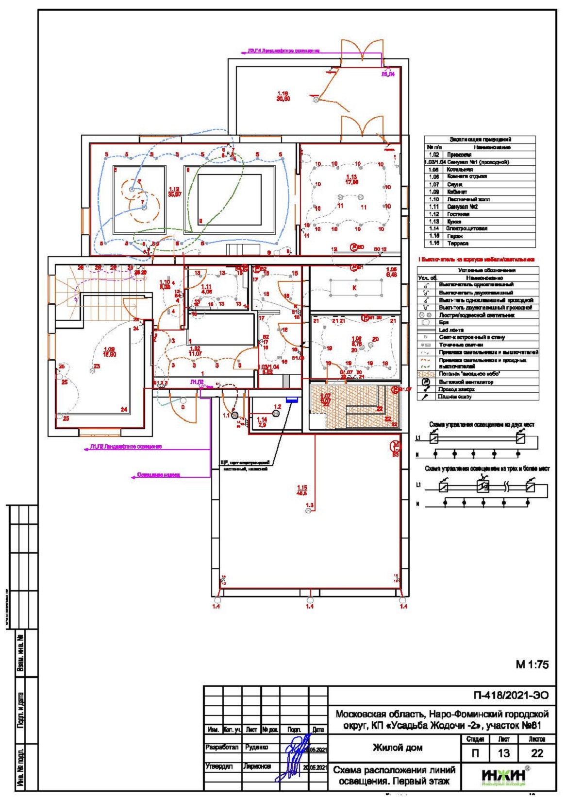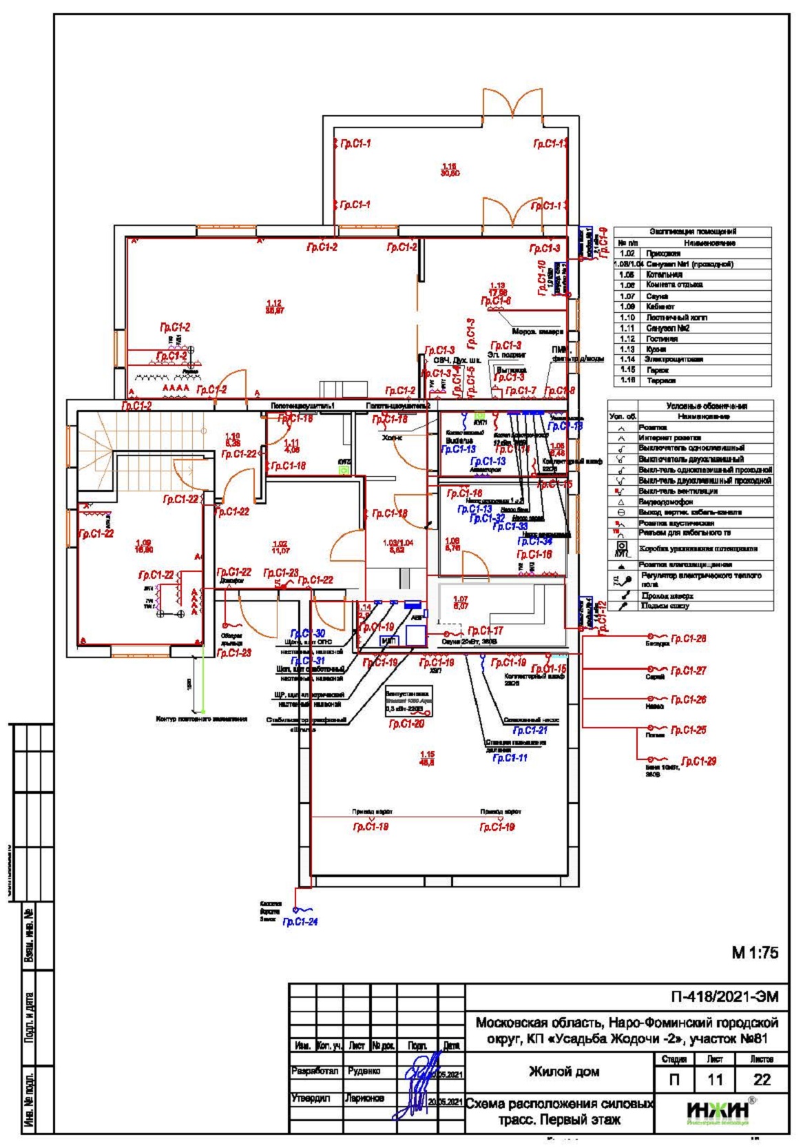 Объем проекта электрики дома 325 м.кв.: 22 листа.