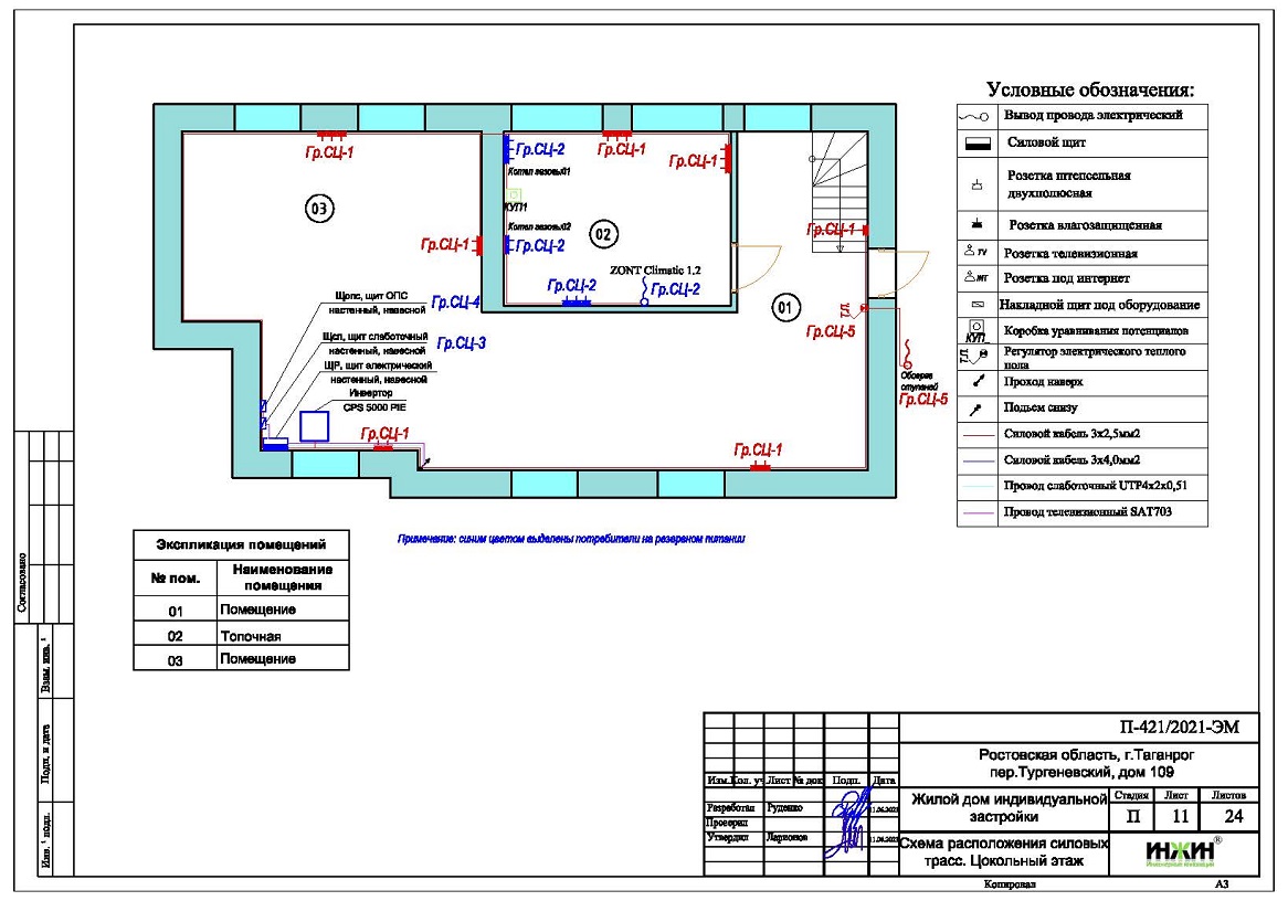 Объем проекта электрики дома 200 м.кв.: 24 листа.