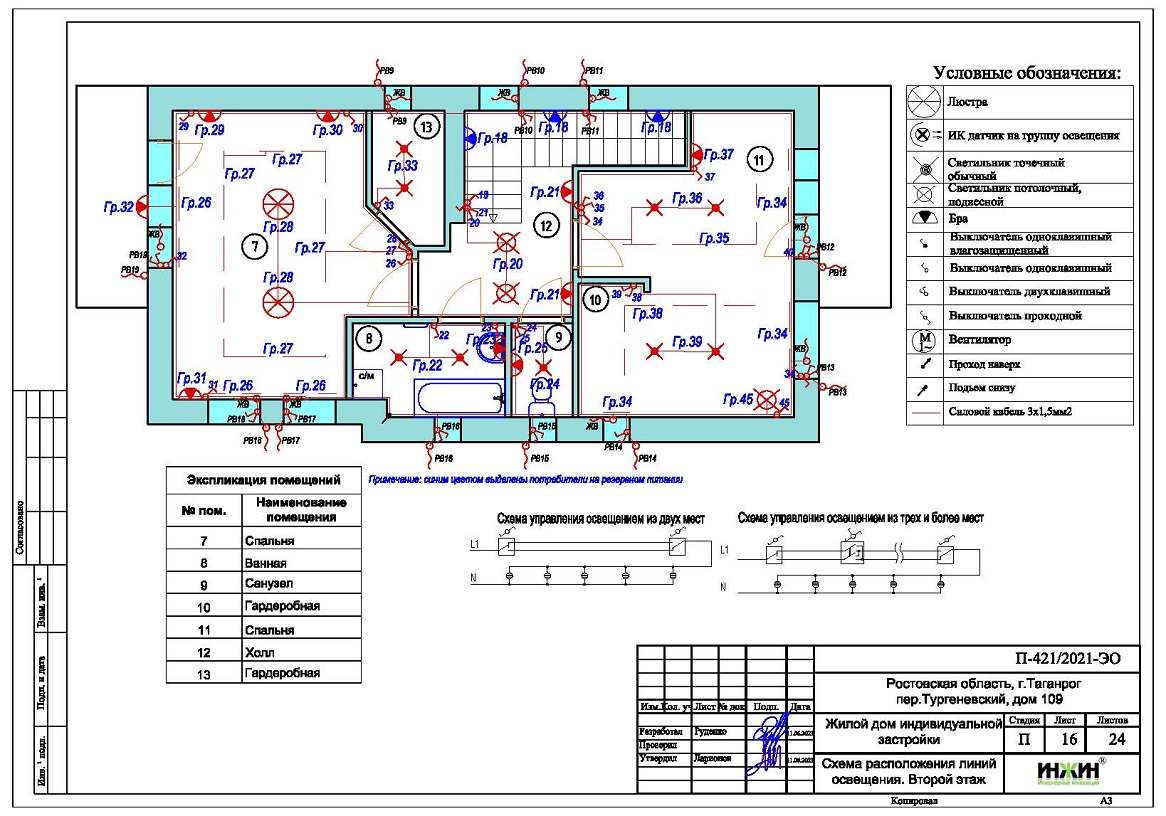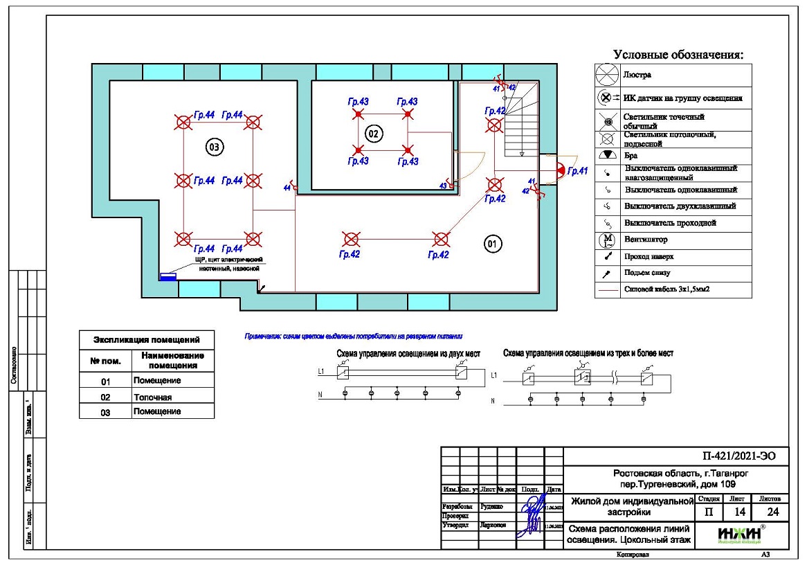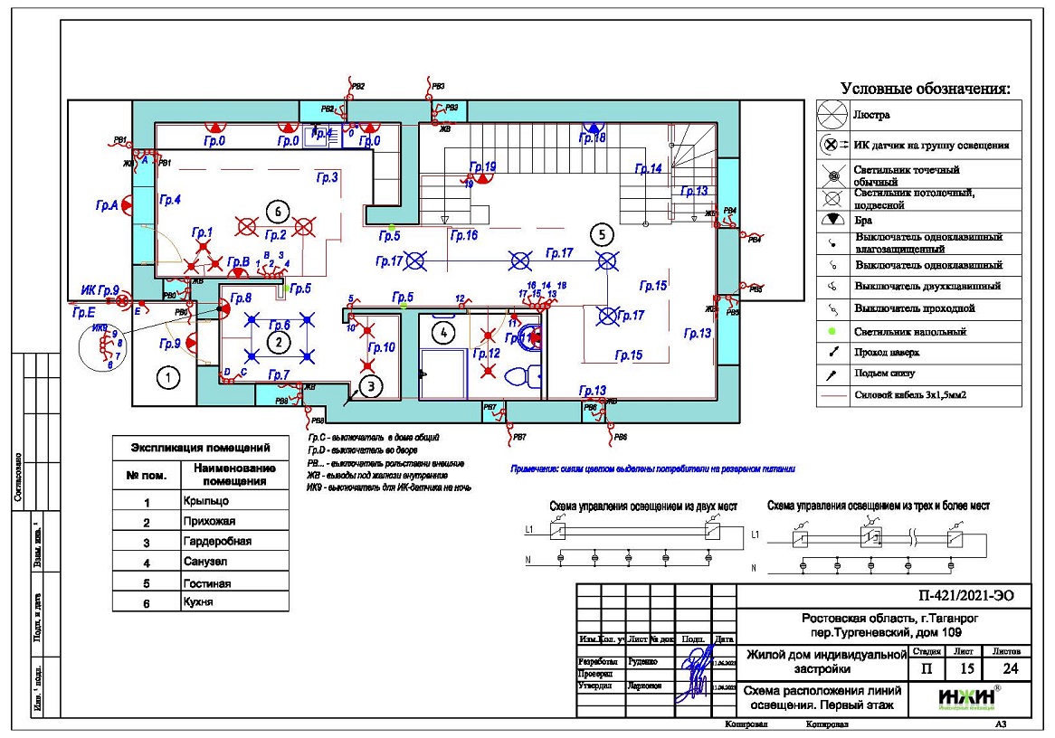 4. Чертежи групповых осветительных сетей дома в Таганроге.