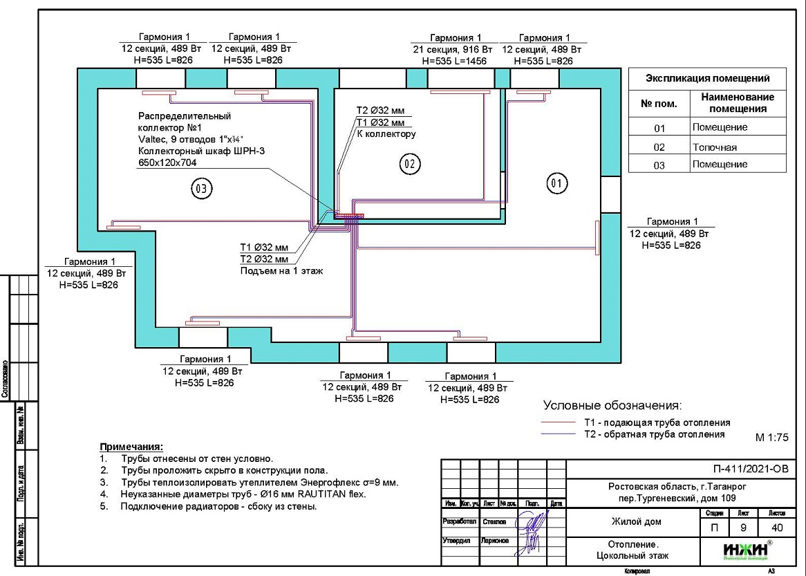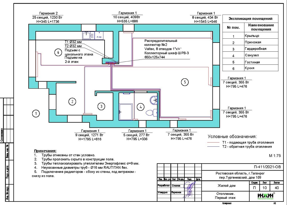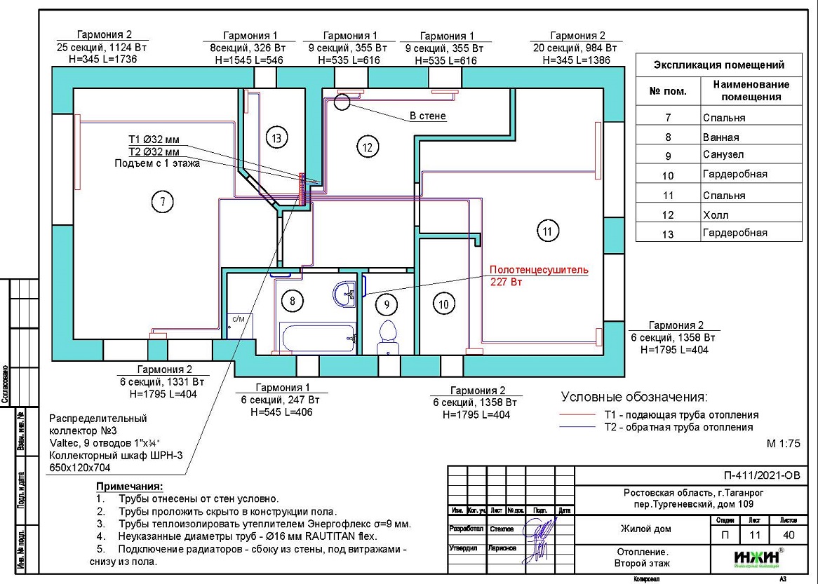 3. Комплект поэтажных чертежей радиаторного отопления дома в Таганроге.