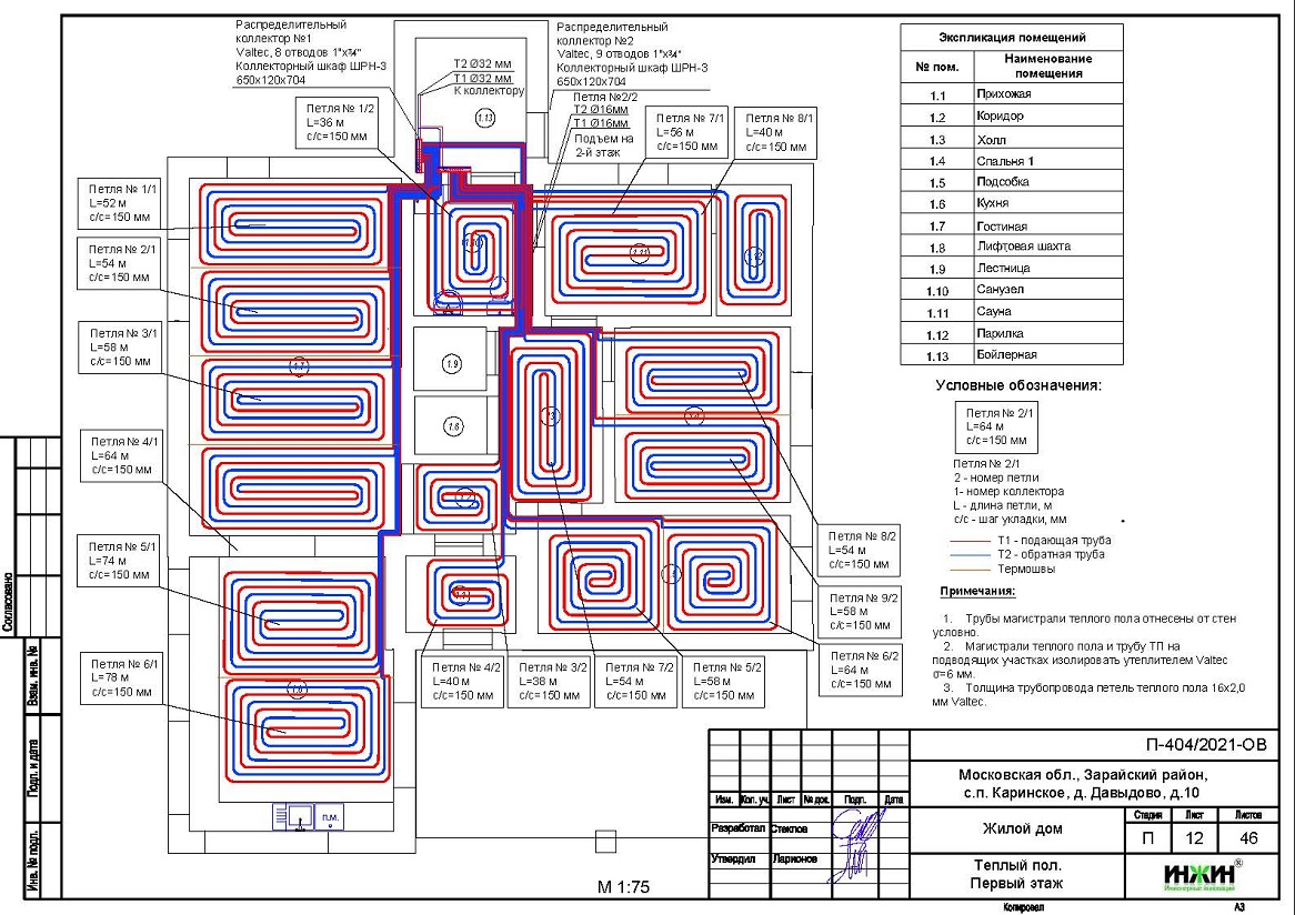 Водяной теплый пол дома в дер. Давыдово (проект теплого пола).