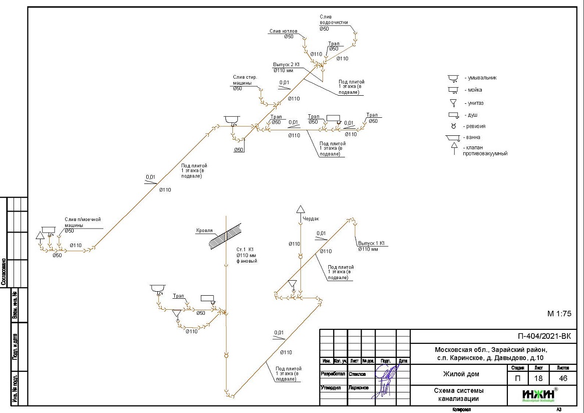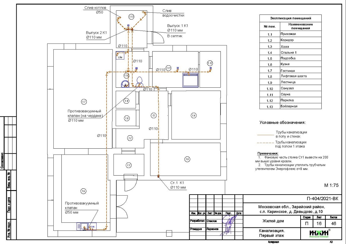 Внутренняя канализация (проект канализации) дома в дер. Давыдово.