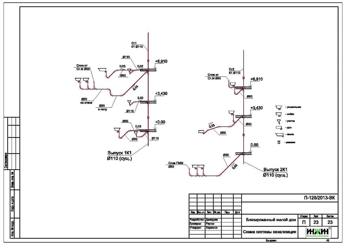 5. Комплект чертежей внутреннего водопровода и канализации таунхауса.