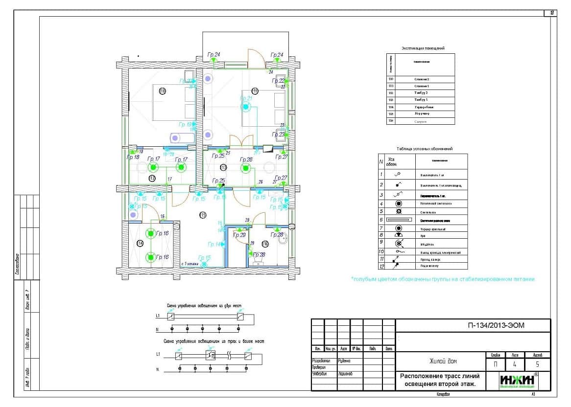 Поэтажные планы групповых осветительных сетей (система освещения).