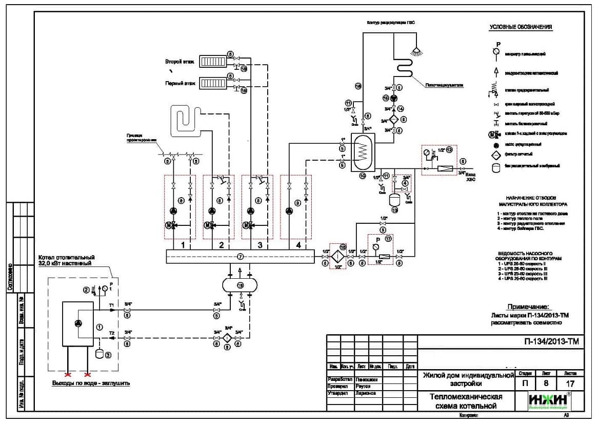 3. Тепломеханическая схема котельной деревянного дома с размещением оборудования.