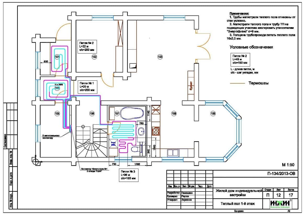 5. Комплект чертежей водяного теплого пола дома в КП "Святогор".