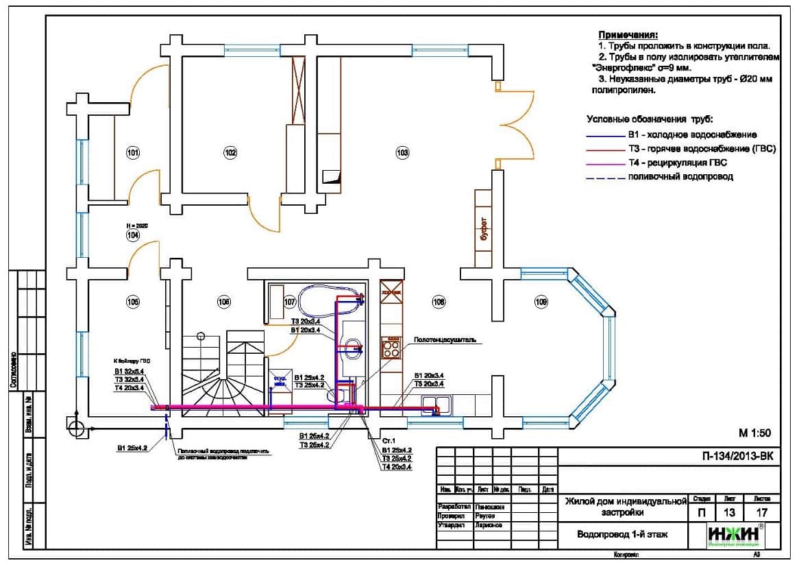 Внутренний водопровод (проект водоснабжения).