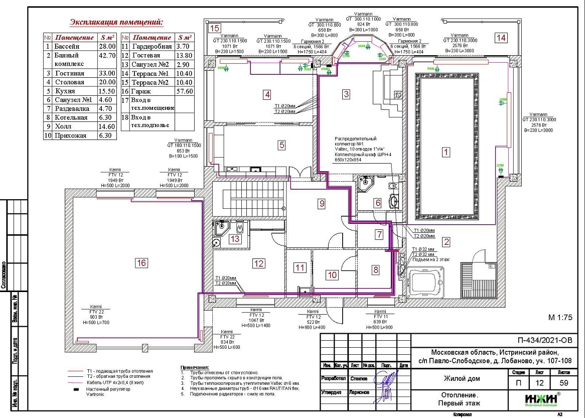 Отопление дома 582 м.кв. в Истринском районе, проект