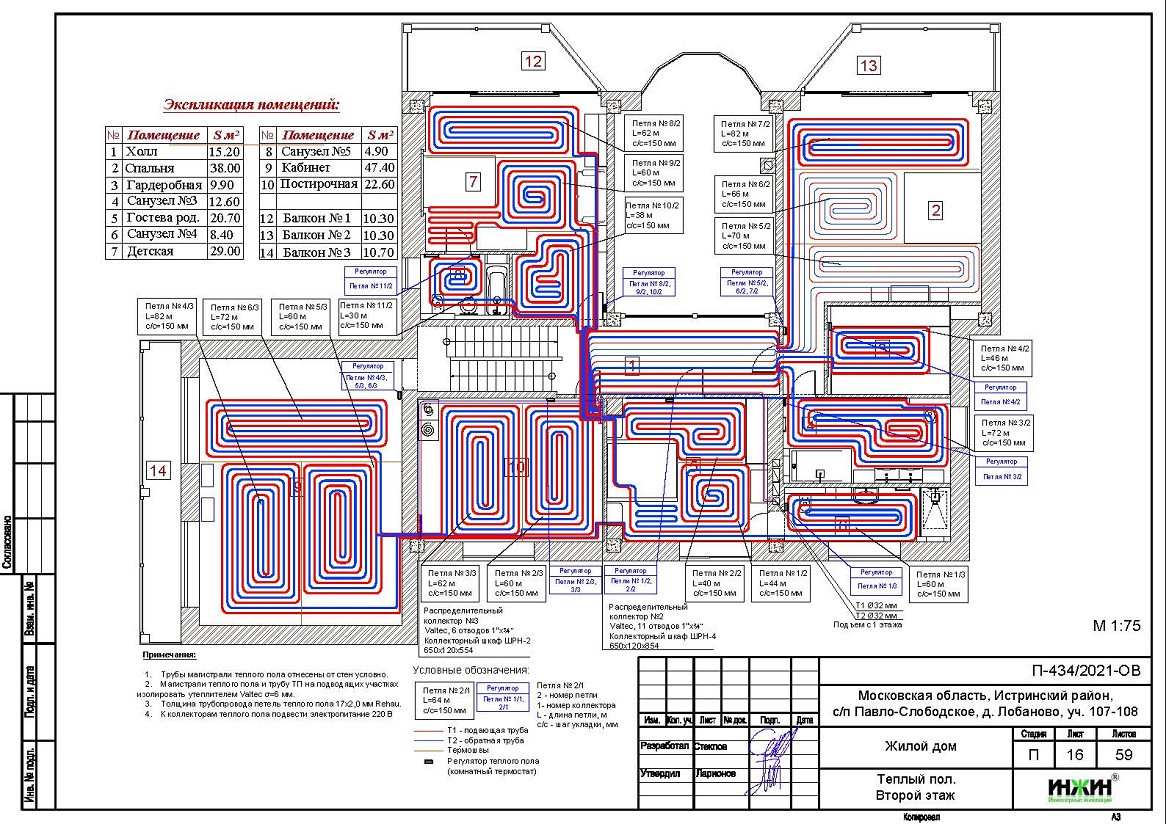 Водяной теплый пол дома в дер. Лобаново (проект теплого пола).