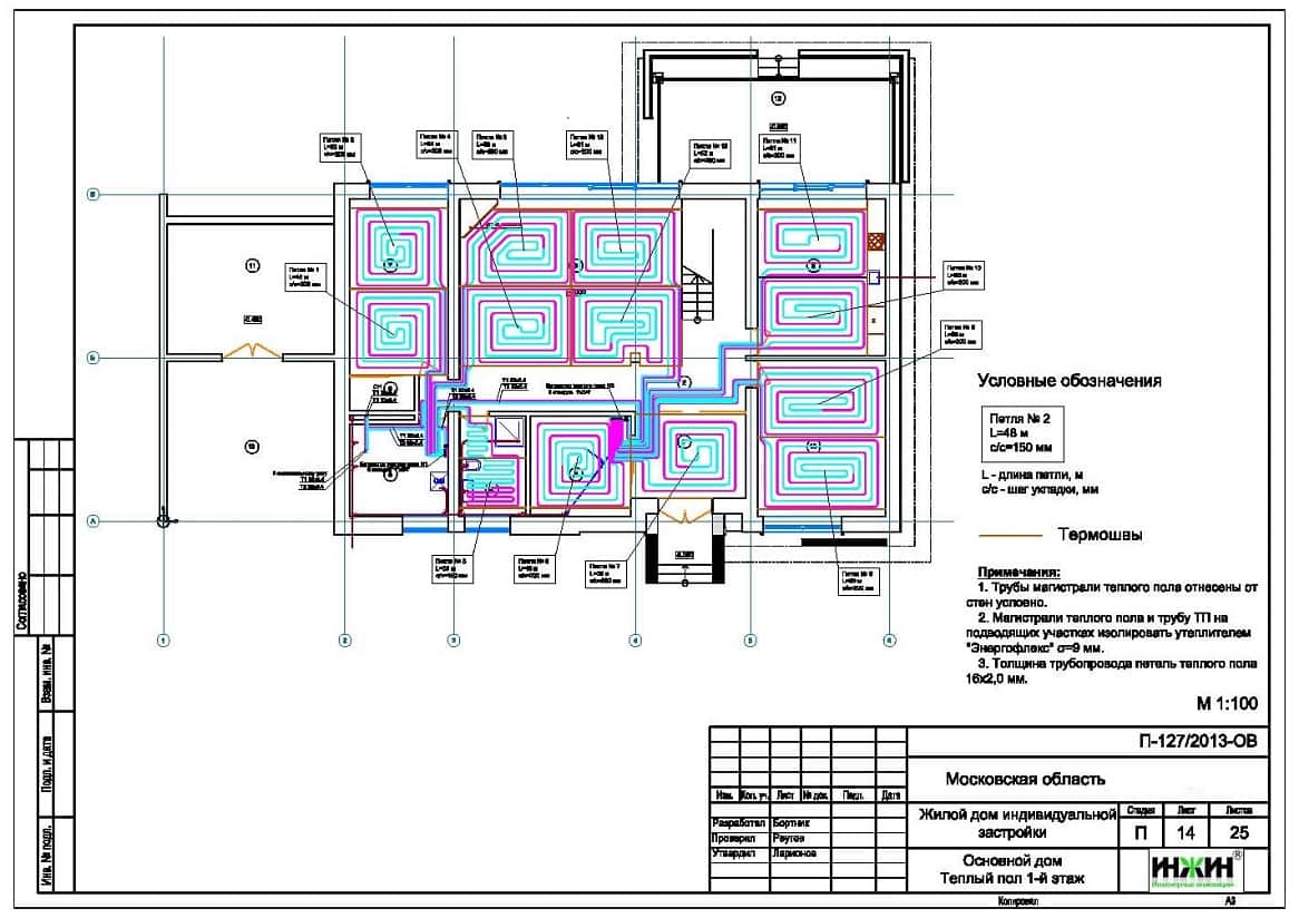 Комплект чертежей радиаторного отопления и теплого пола основного дома.
