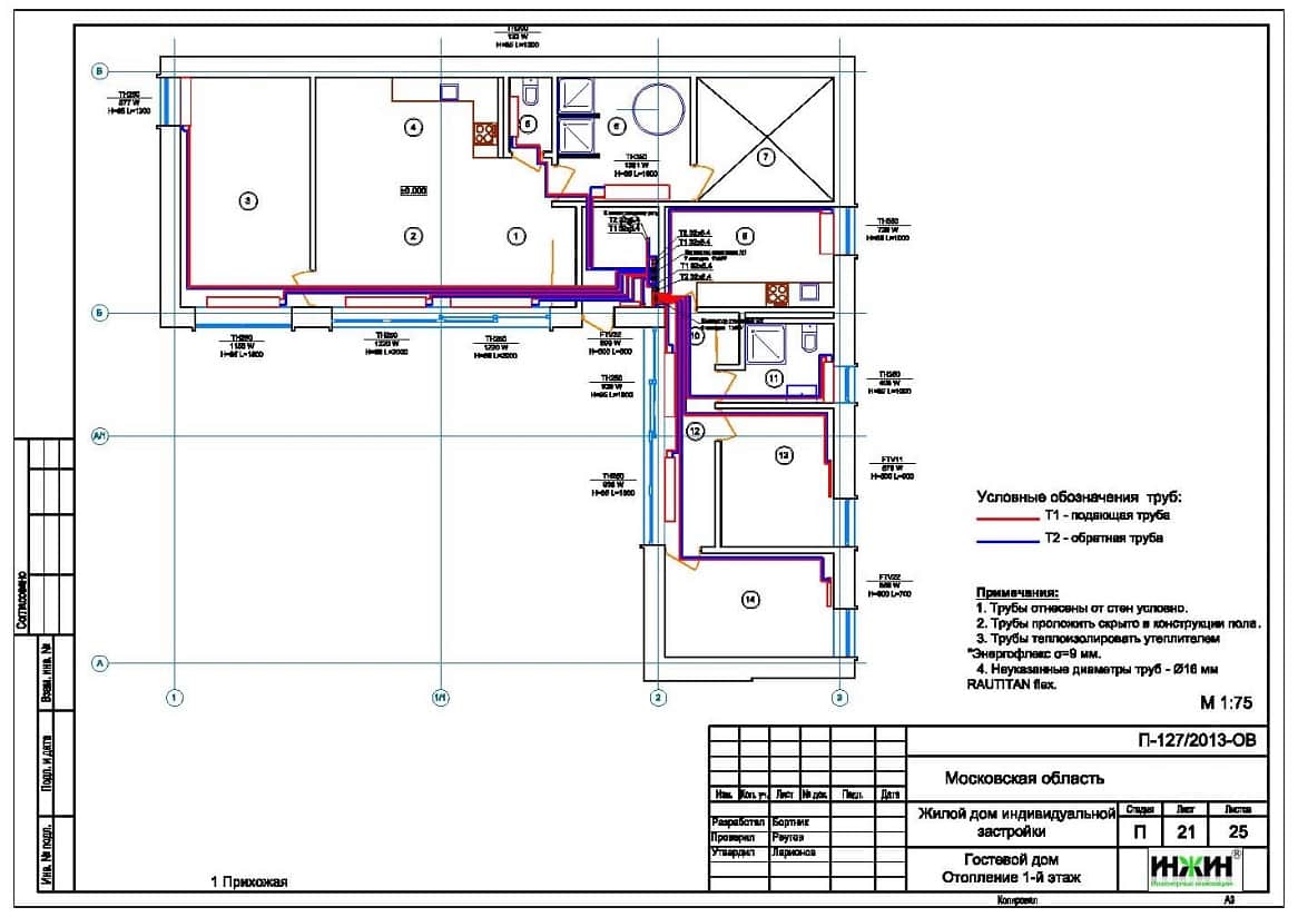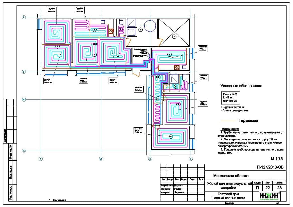 Комплект чертежей радиаторного отопления и теплого пола гостевого дома.