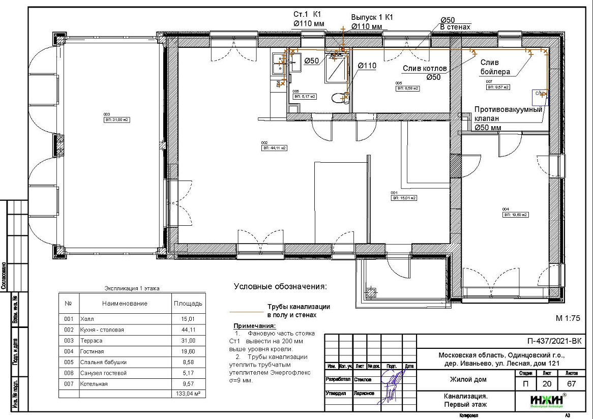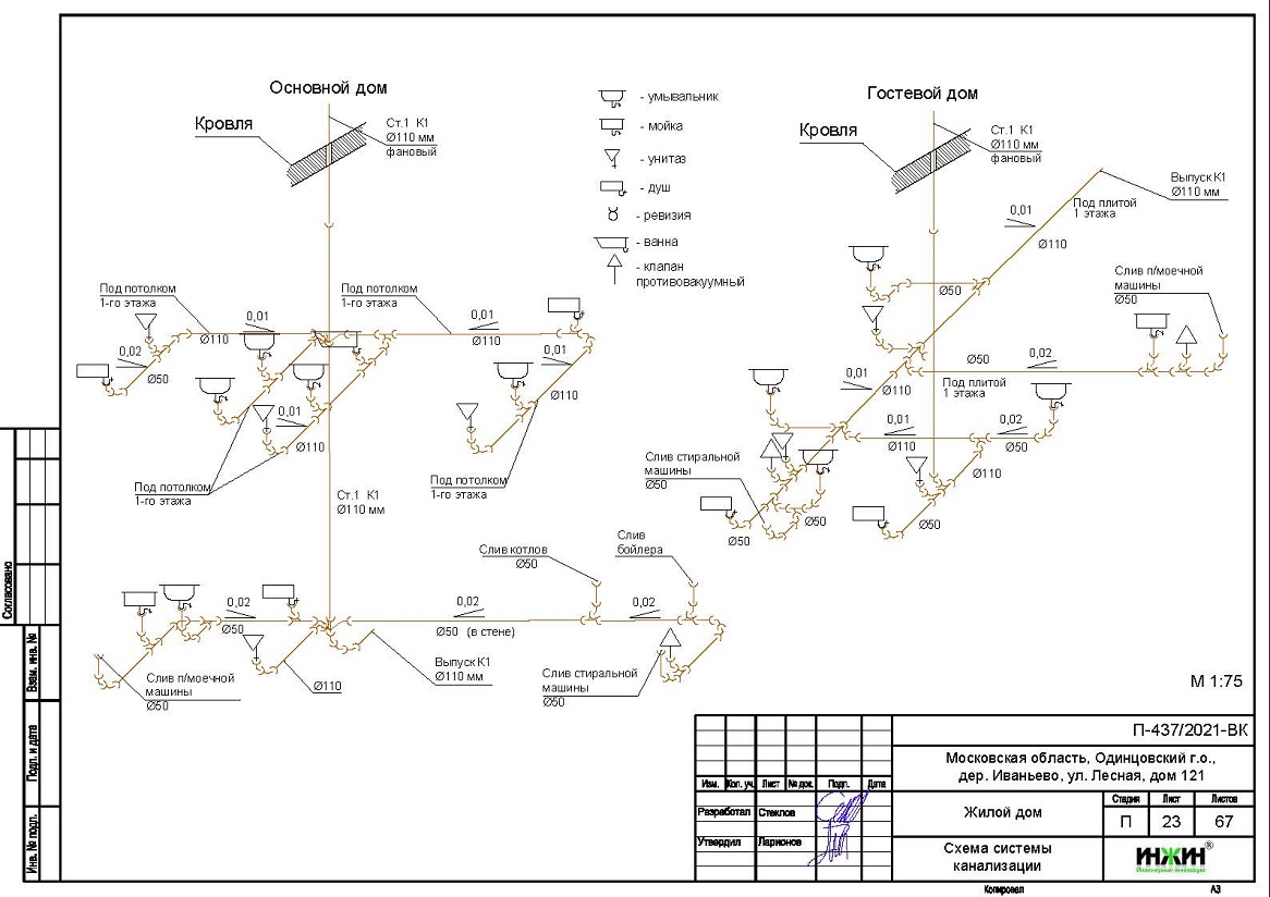 Внутренняя канализация (проект канализации) дома в дер. Иваньево.