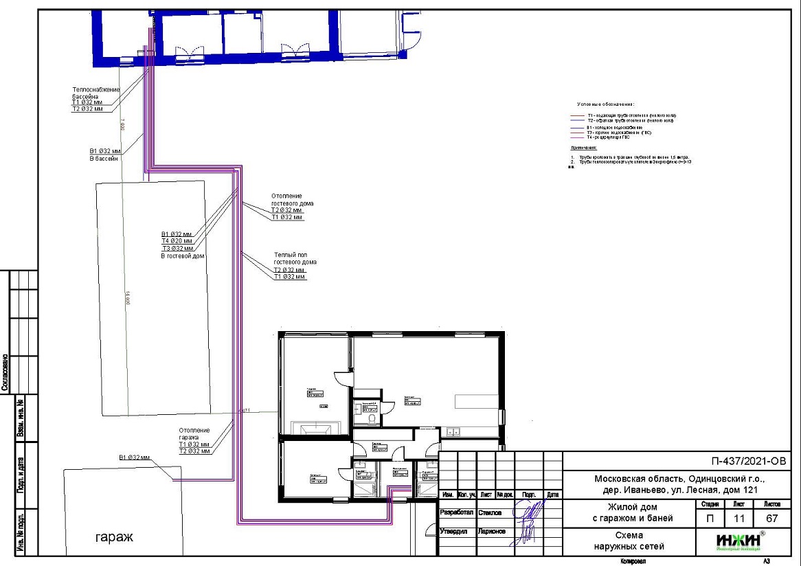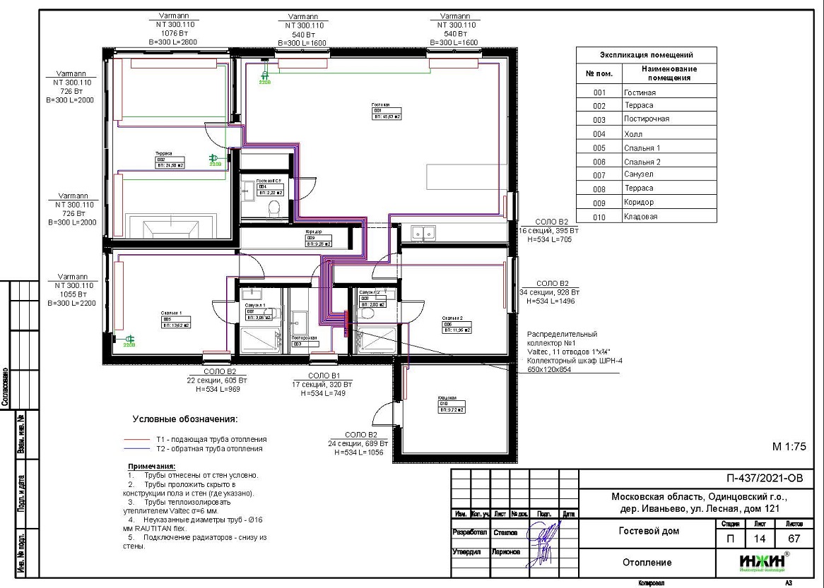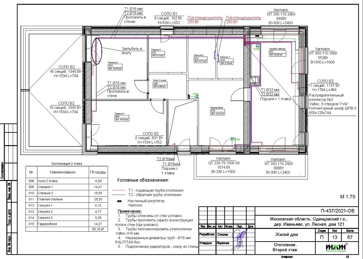 Объем проекта отопления, канализации и водоснабжения дома в дер. Иваньево: 67 листов.