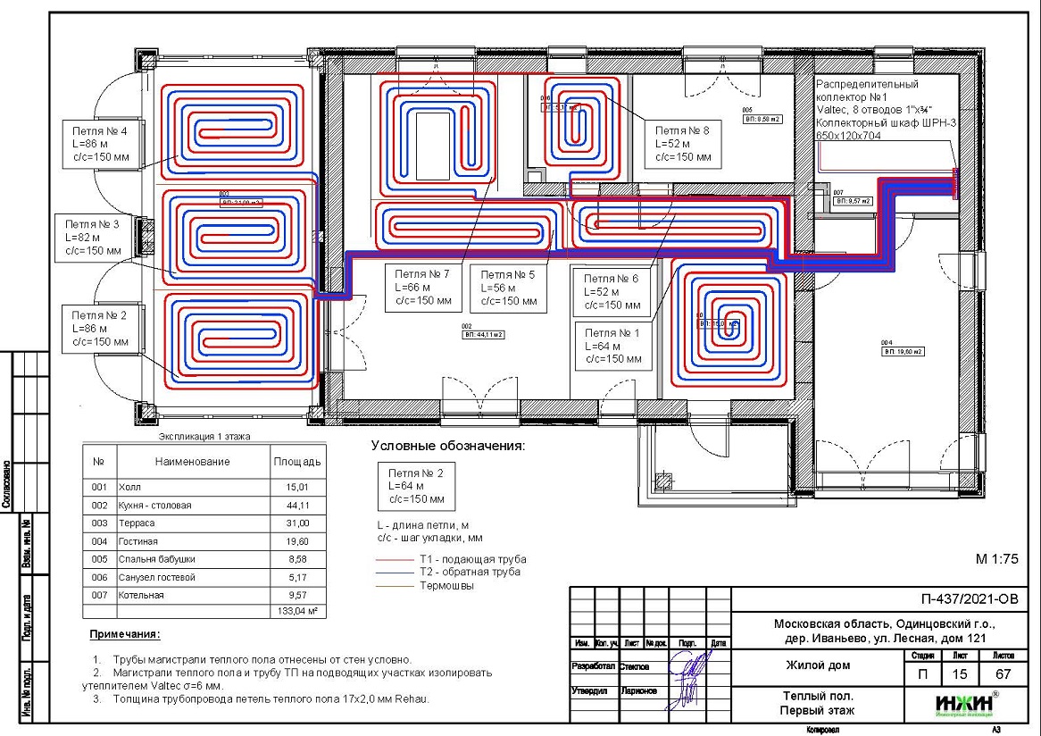 Водяной теплый пол дома в дер. Иваньево (проект теплого пола).