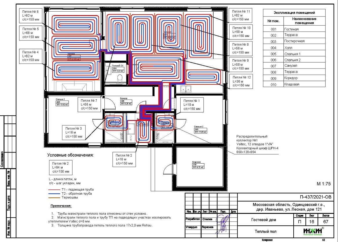 4. Комплект чертежей теплого пола на площади 175 м.кв.