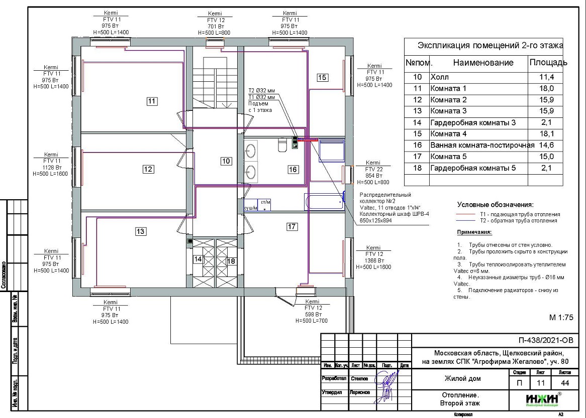 Объем проекта отопления, канализации и водоснабжения дома в КП "Дачный-2": 44 листа.