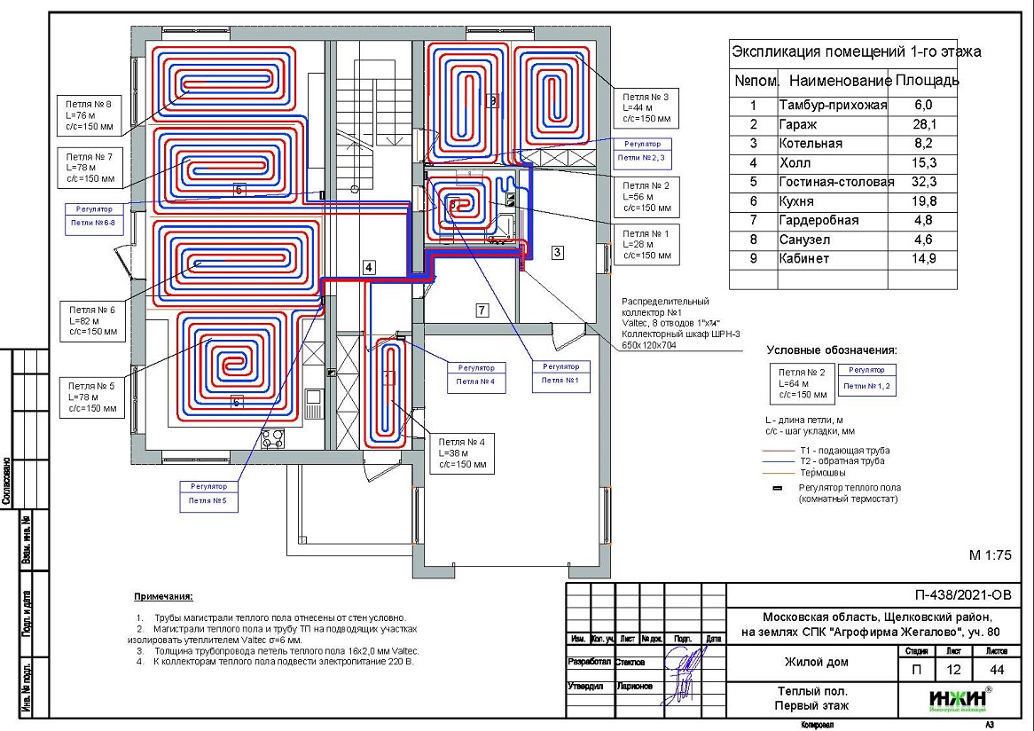 Водяной теплый пол дома в КП "Дачный-2" (проект теплого пола).