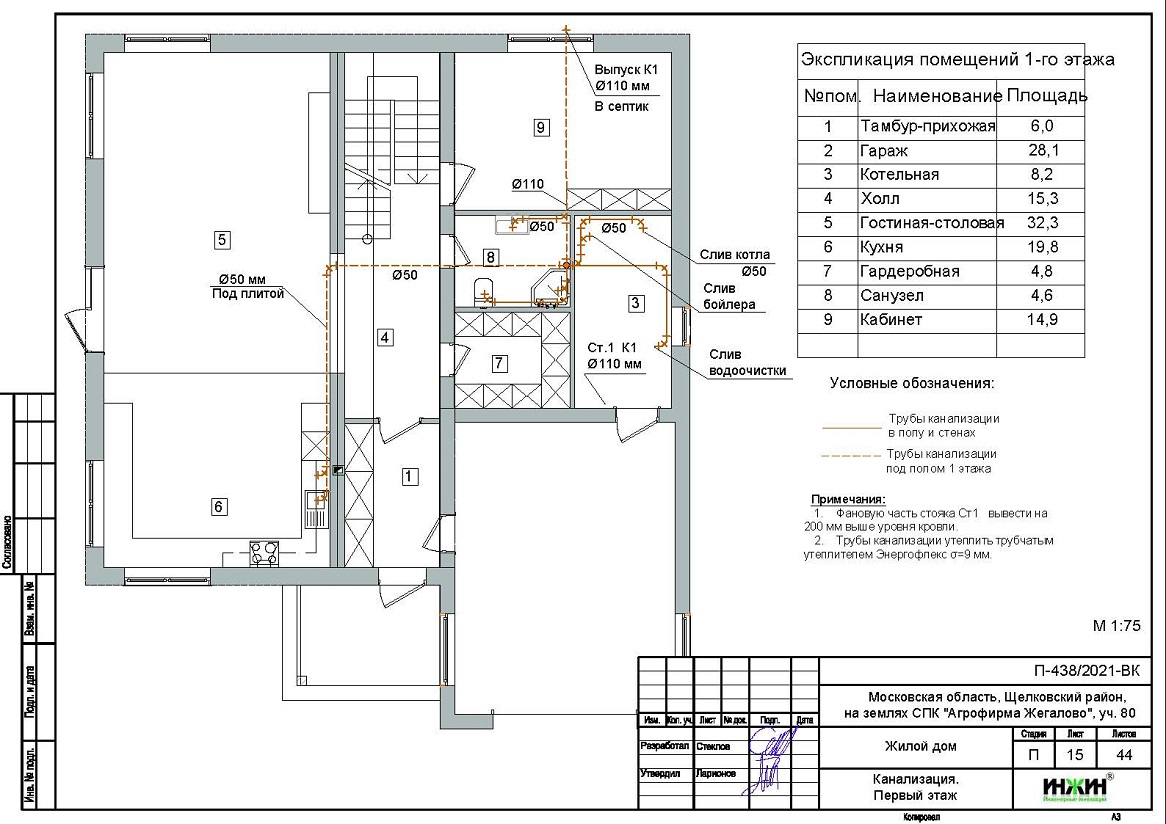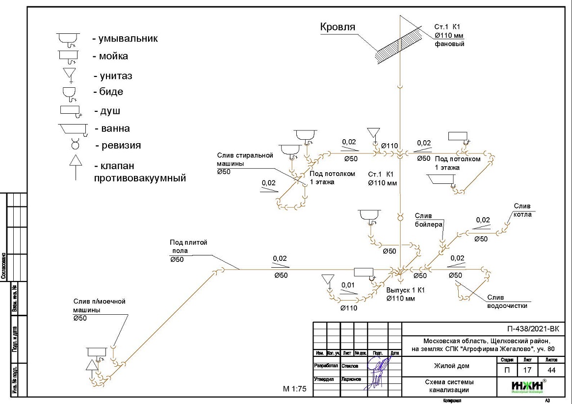 Внутренняя канализация (проект канализации) дома в КП "Дачный-2".