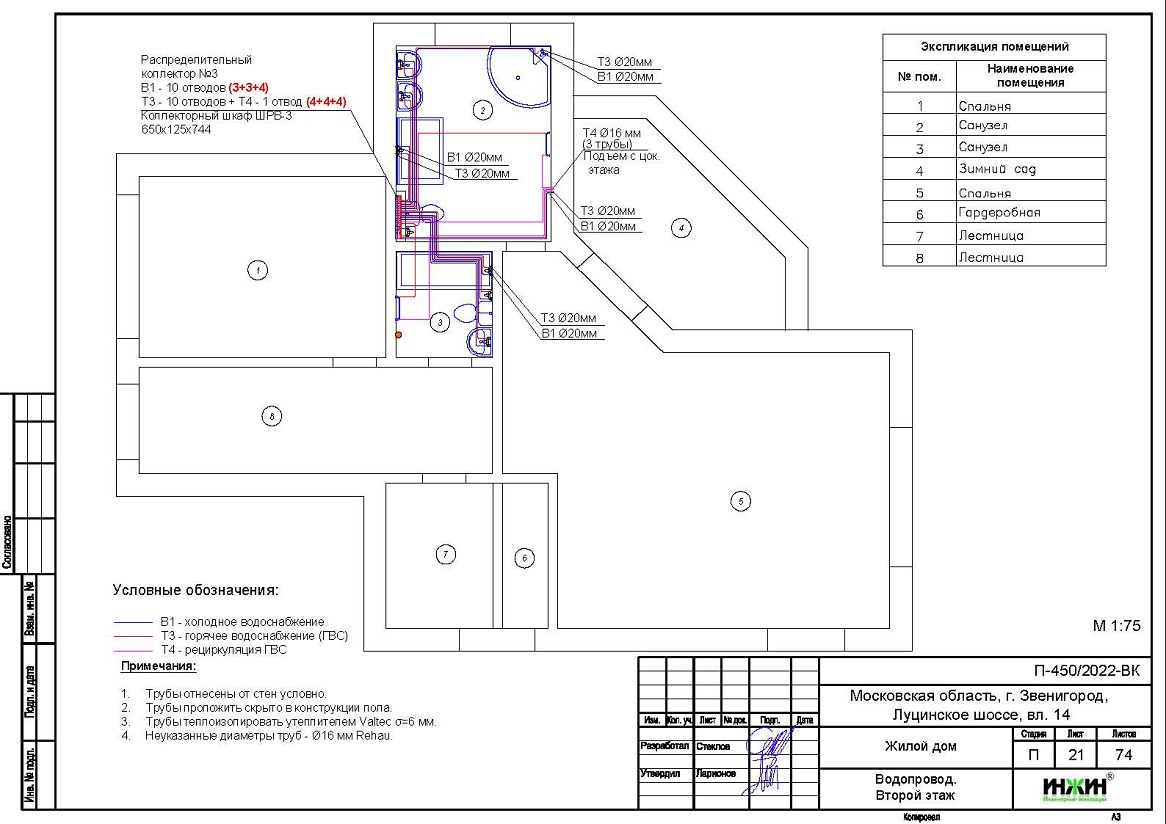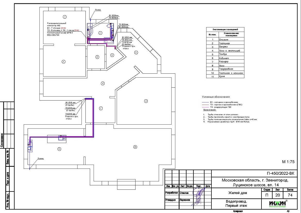 Внутренний водопровод дома в г. Звенигород (проект водоснабжения).