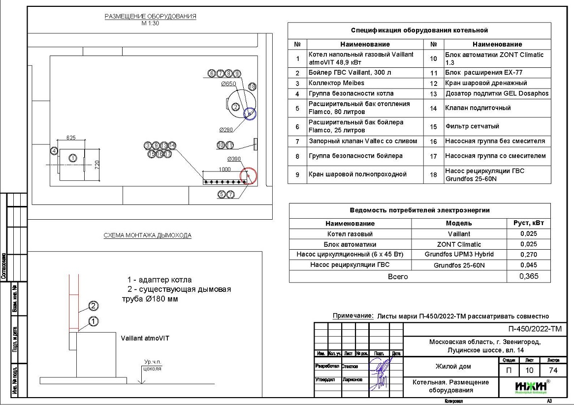 Состав проекта котельной, отопления, канализации и водоснабжения дома в Звенигороде: