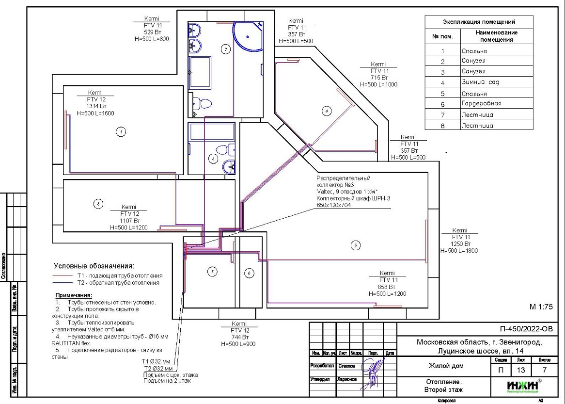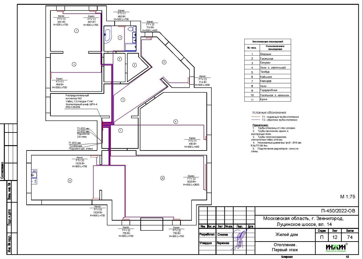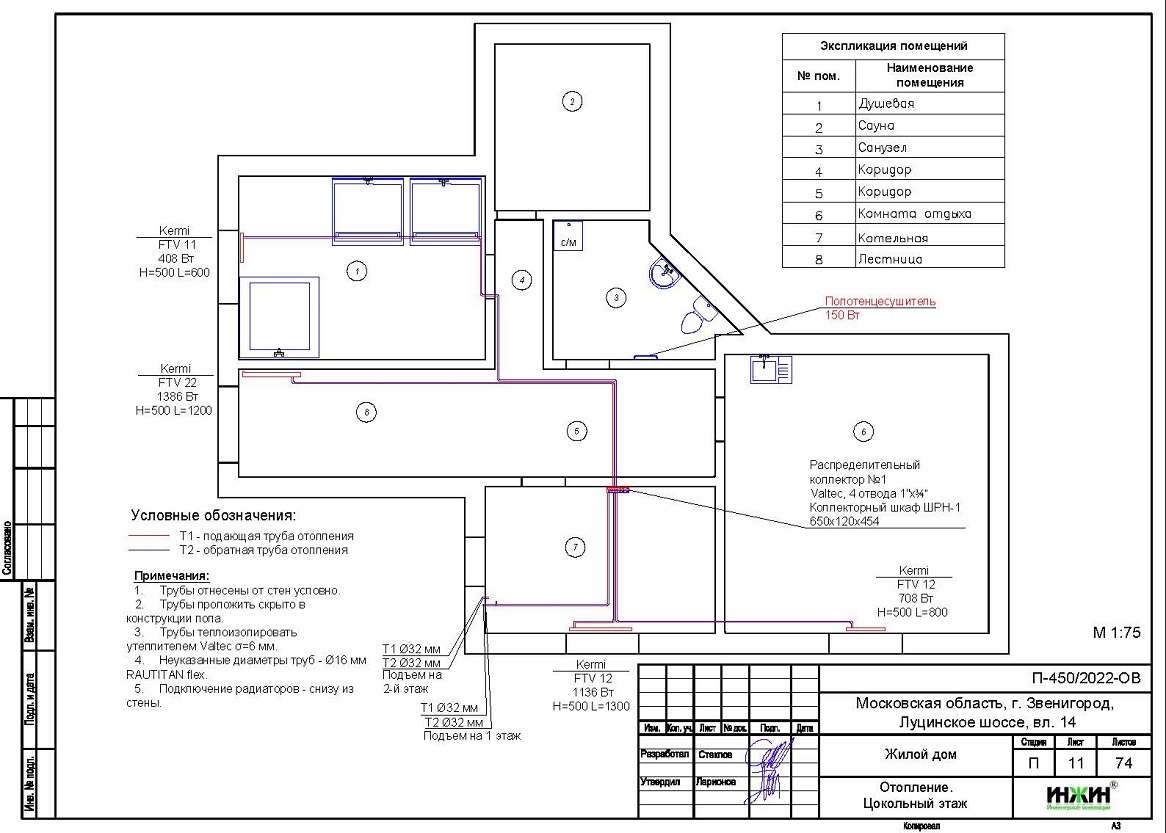 Объем проекта отопления, канализации и водоснабжения дома в г. Звенигород: 74 листа.