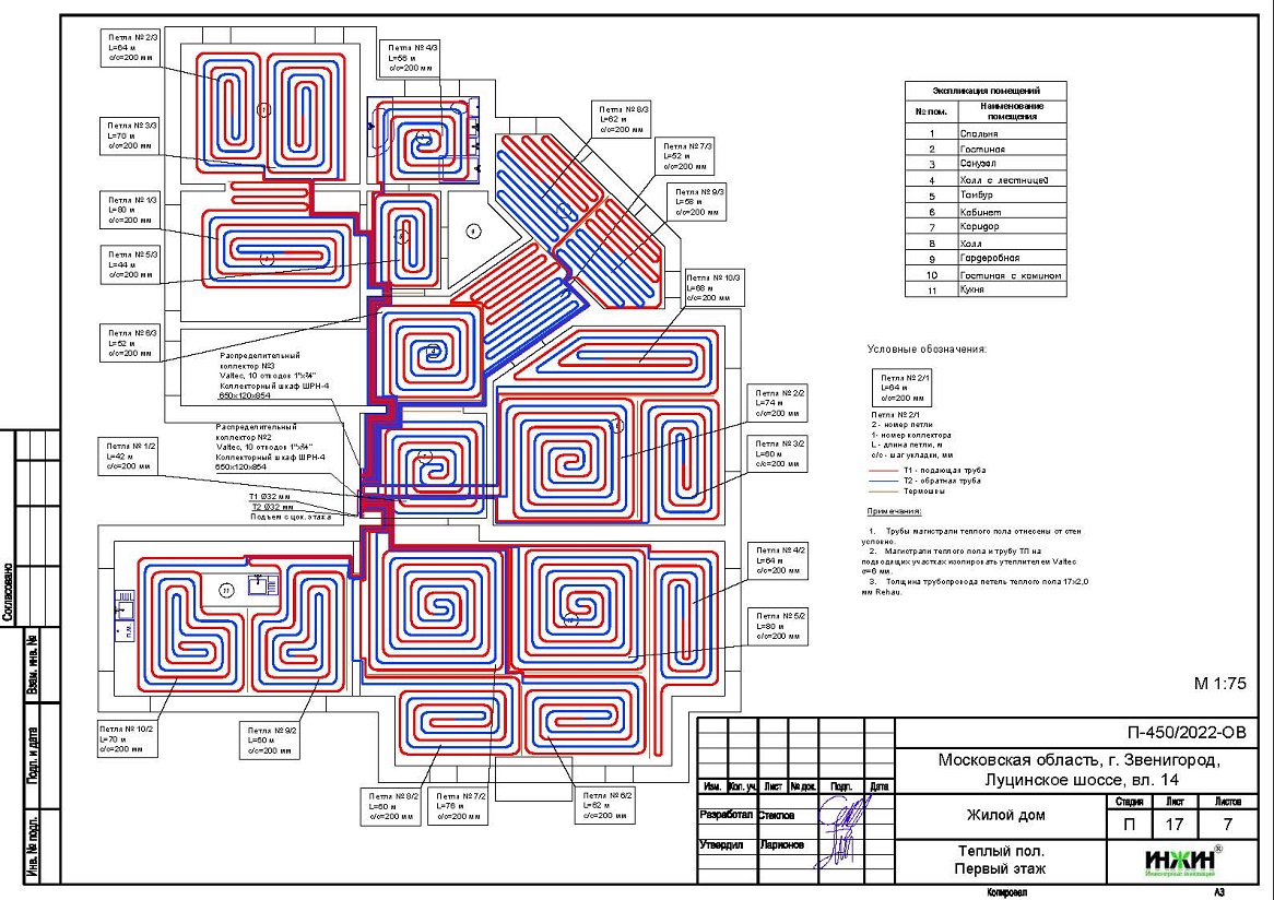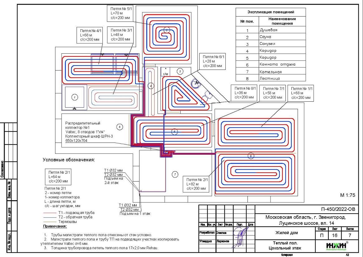 Водяной теплый пол дома в г. Звенигород (проект теплого пола).