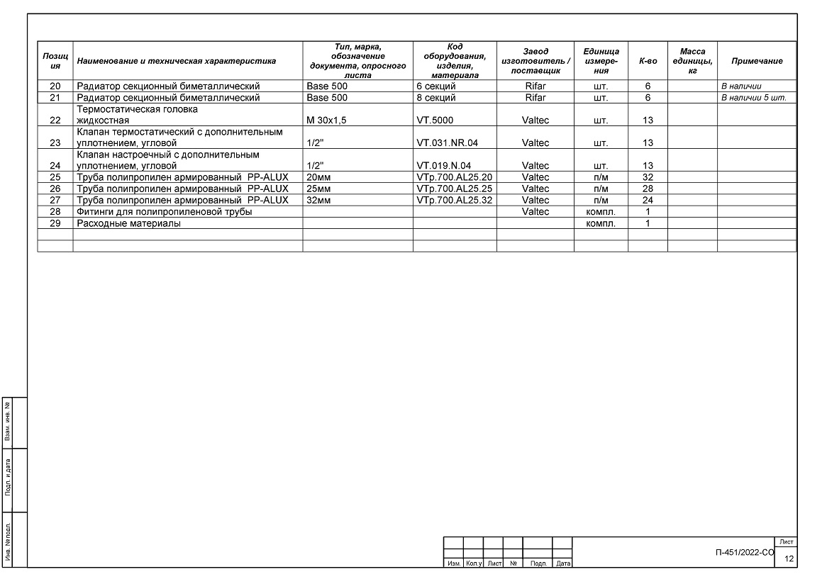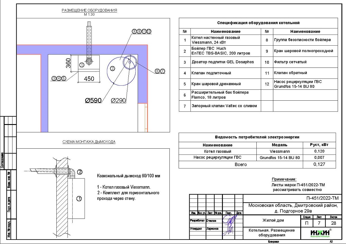 Состав проекта котельной и отопления дома в дер. Подгорное: