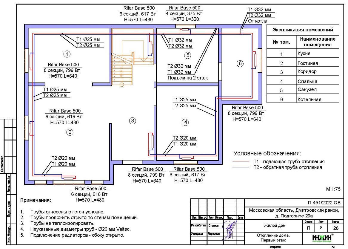 Отопление дома 135 м.кв. Дмитровском районе, проект