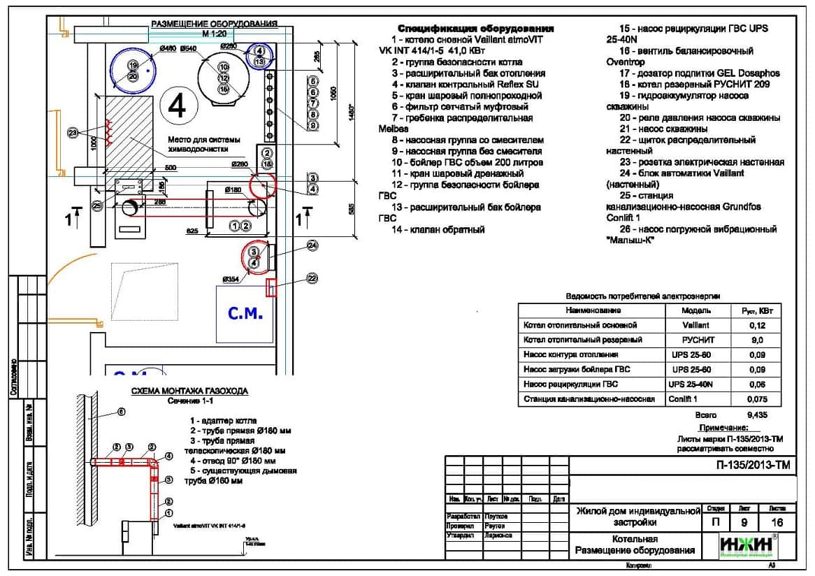Состав проекта котельной, отопления, водопровода и канализации: