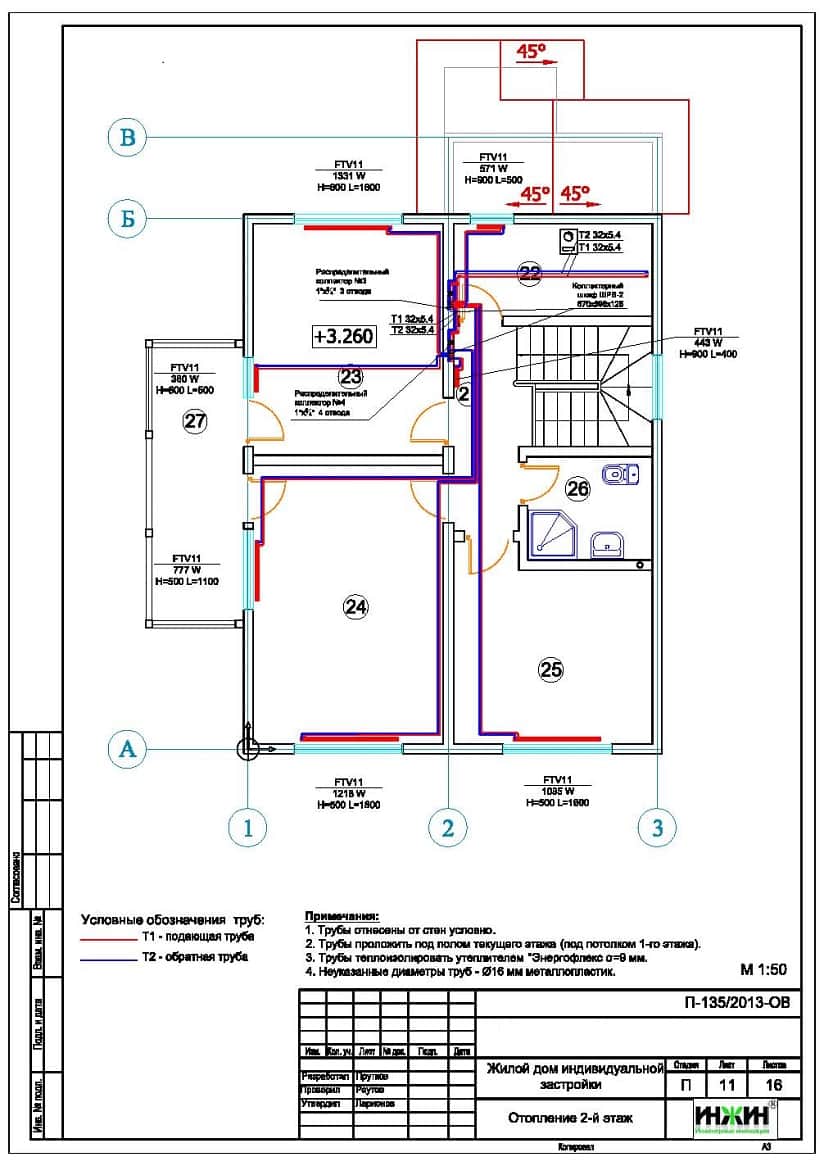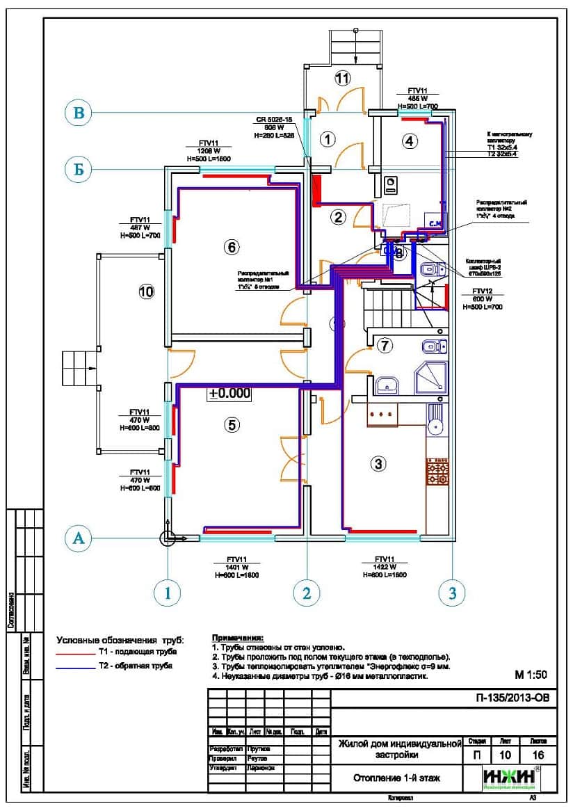 Объем проекта отопления: 36 листов.