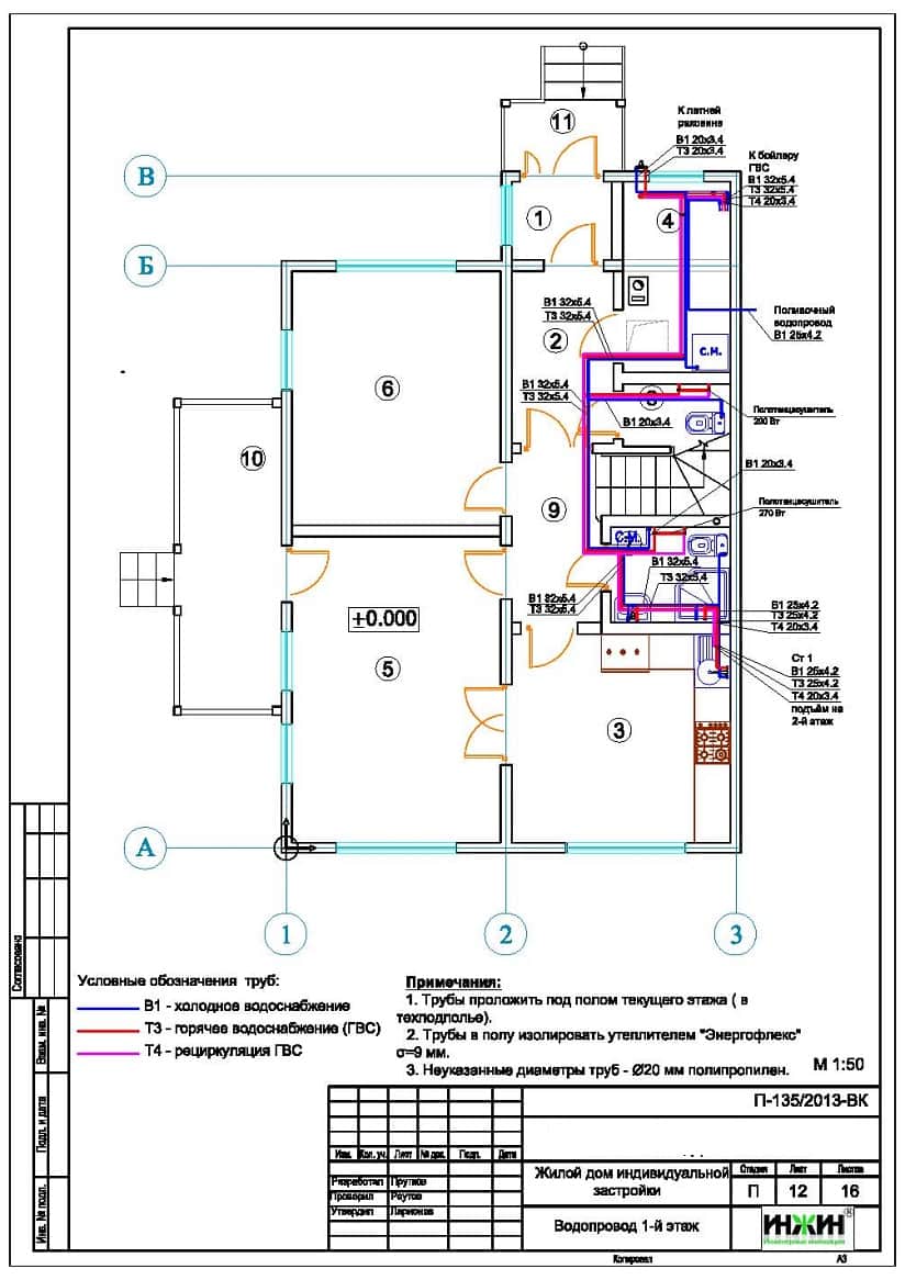 Проект отопления, водоснабжения и канализации выполнен: 03.07.2013