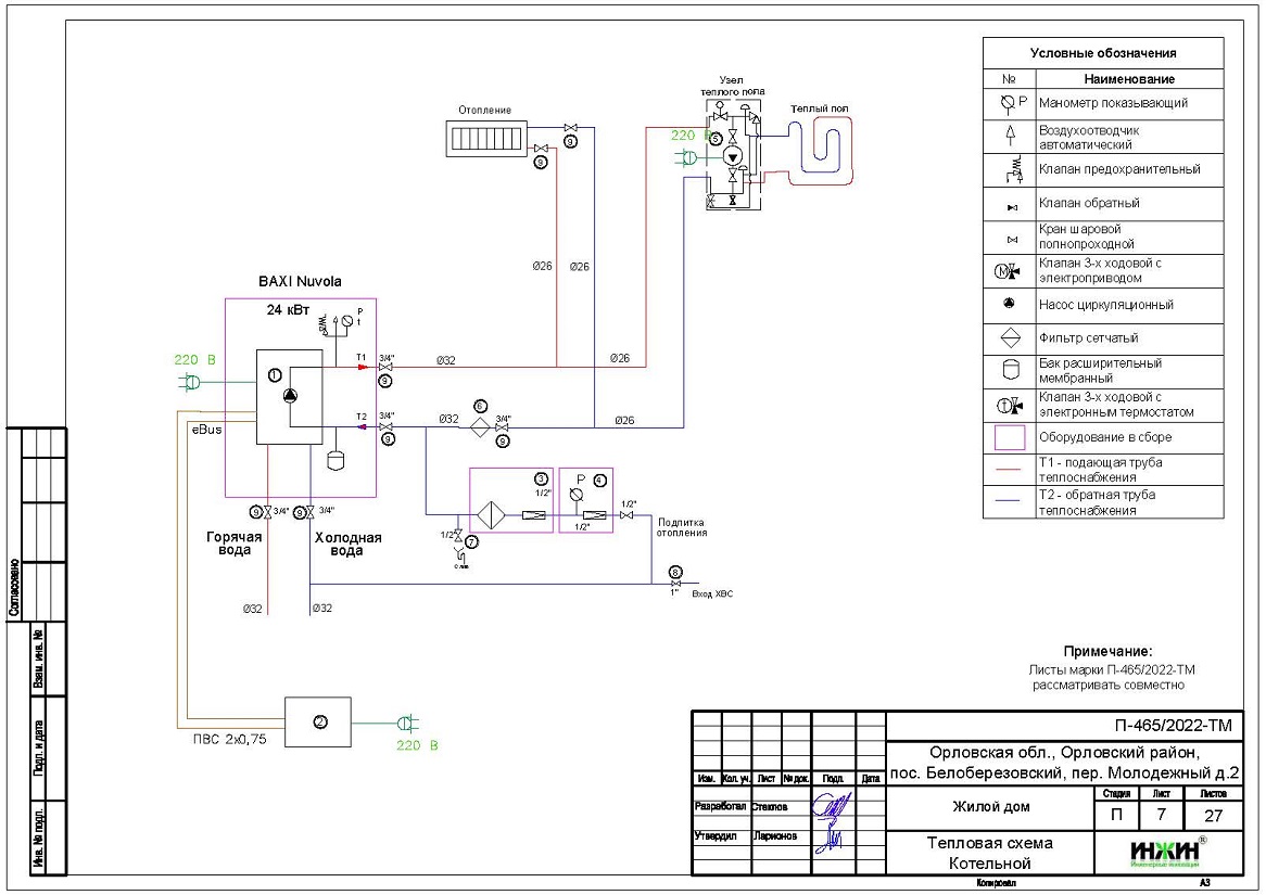 Объем проекта отопления дома в пос. Белоберезовский: 27 листов.