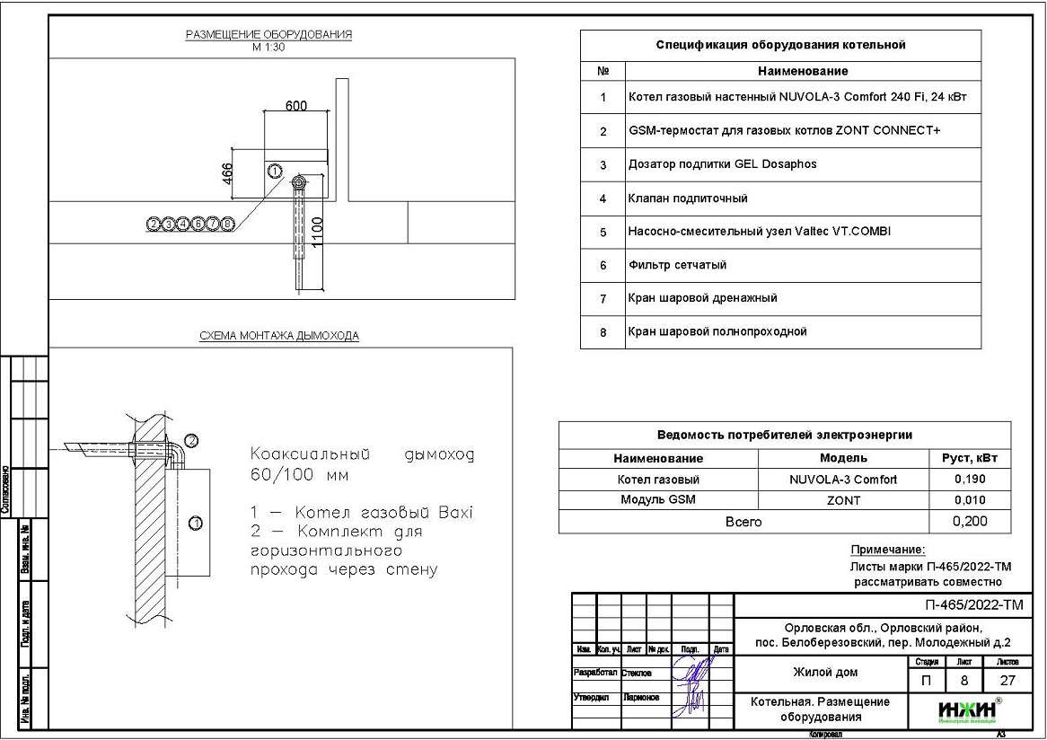Состав проекта котельной, отопления дома в пос. Белоберезовский: