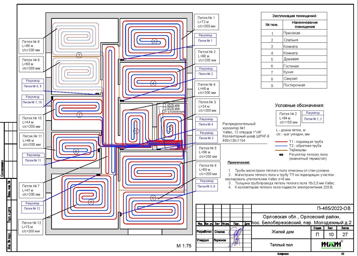 4. Комплект чертежей теплого пола на площади 129 м.кв.