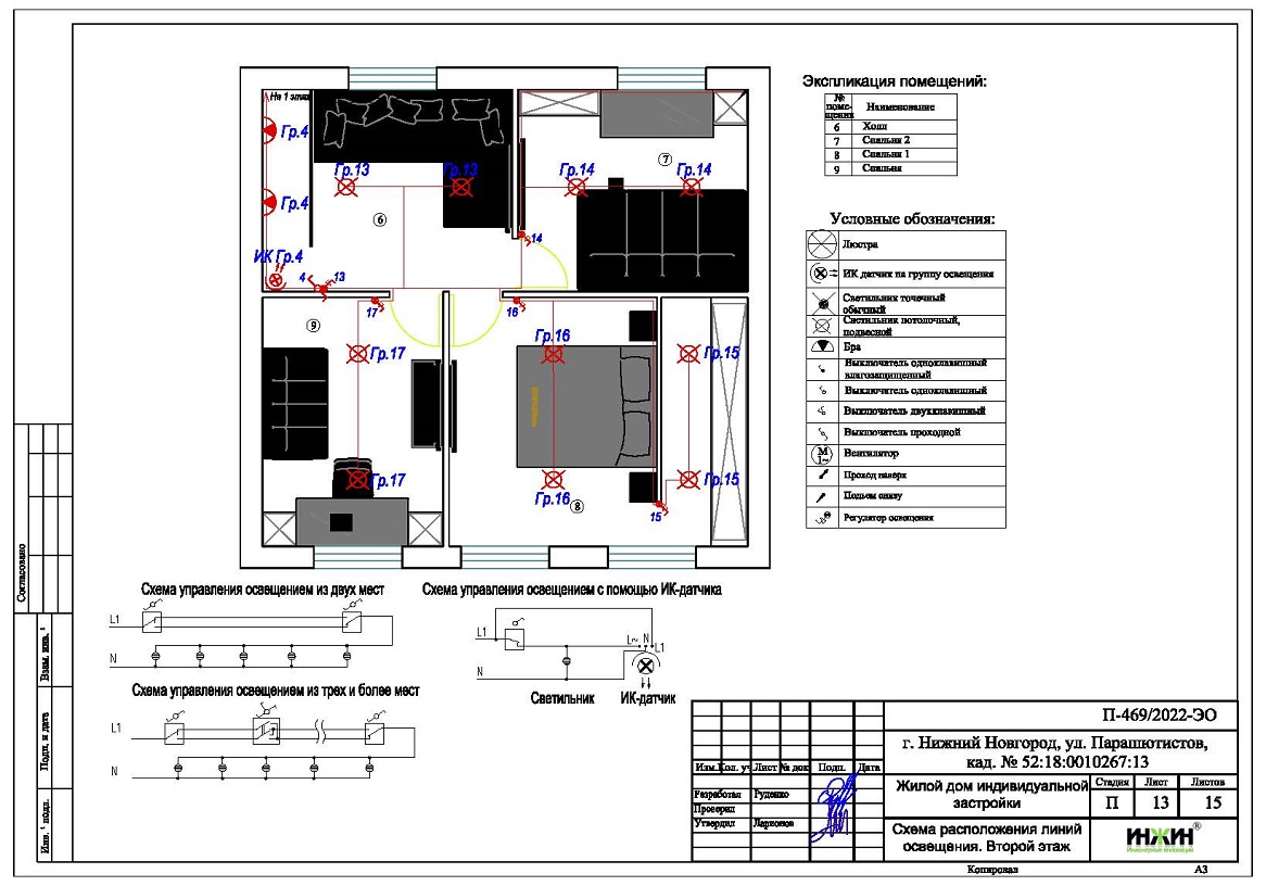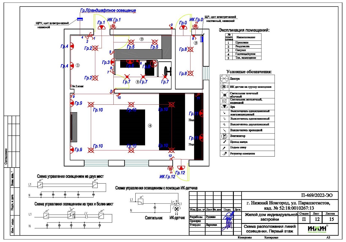 4. Чертежи групповых осветительных сетей дома в Нижнем Новгороде.