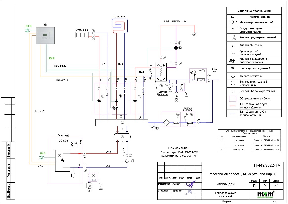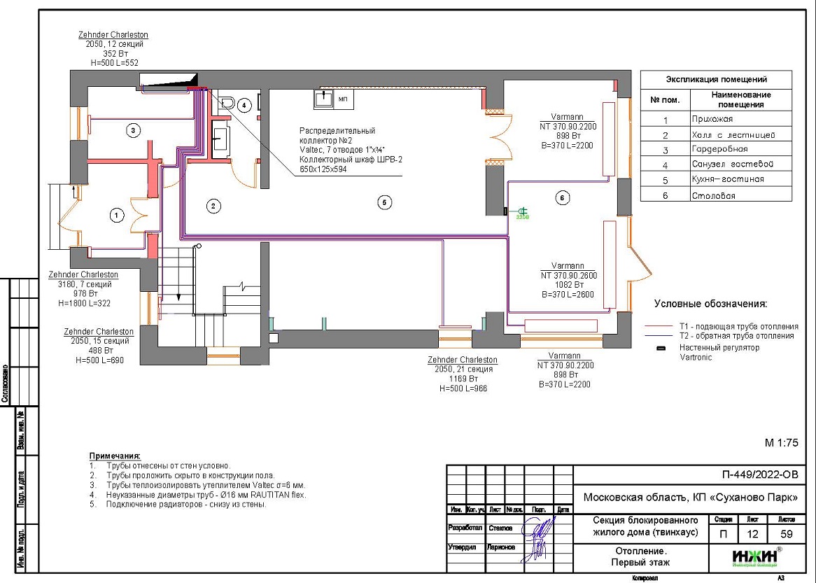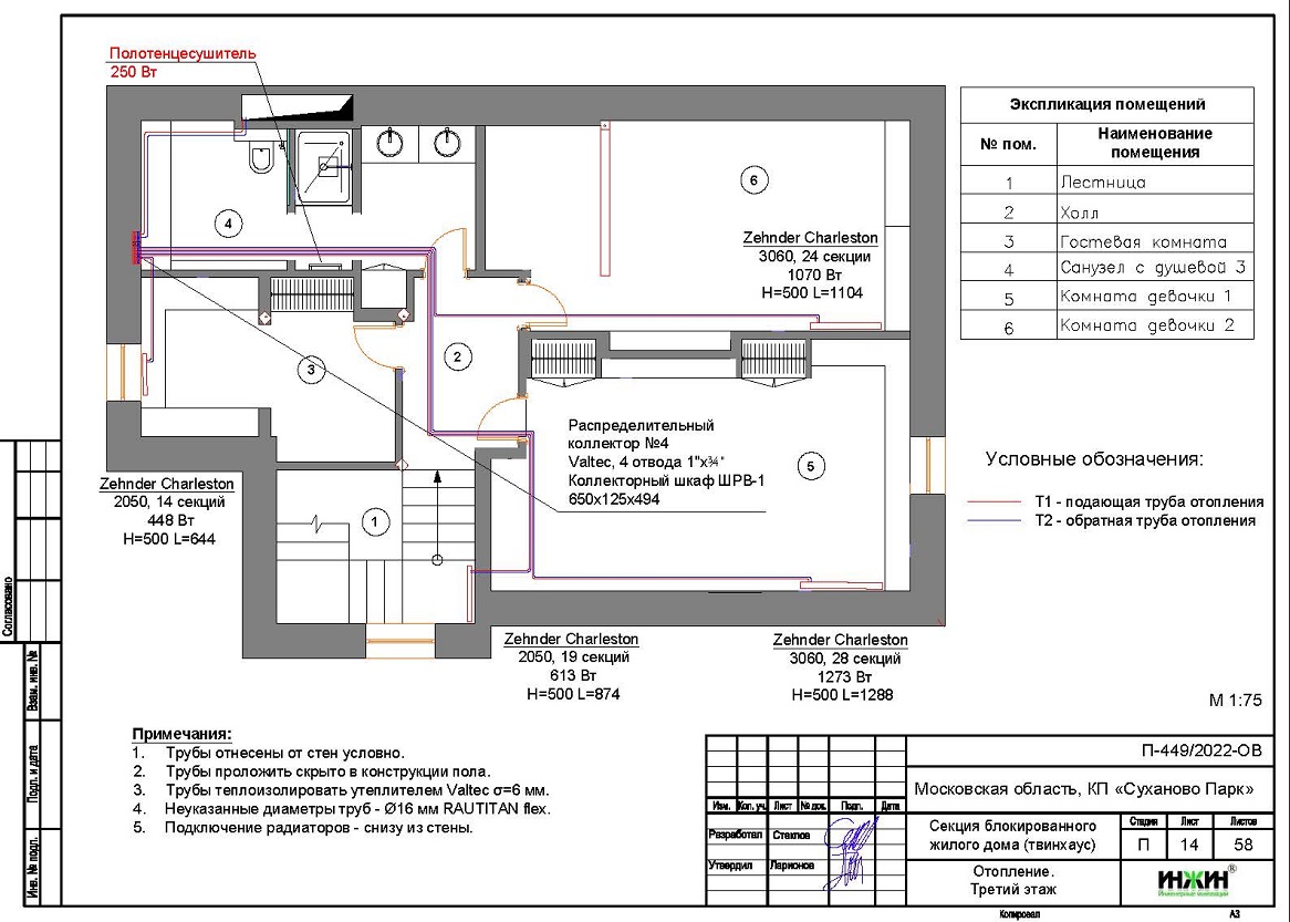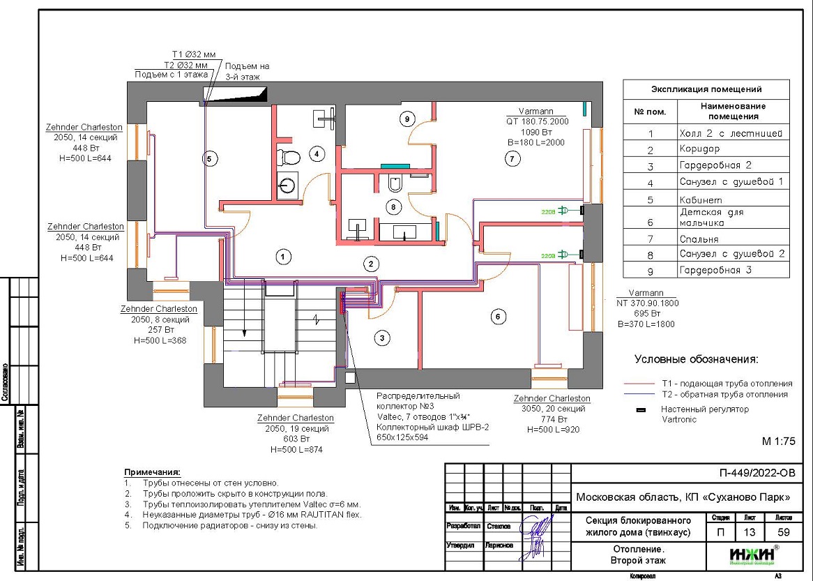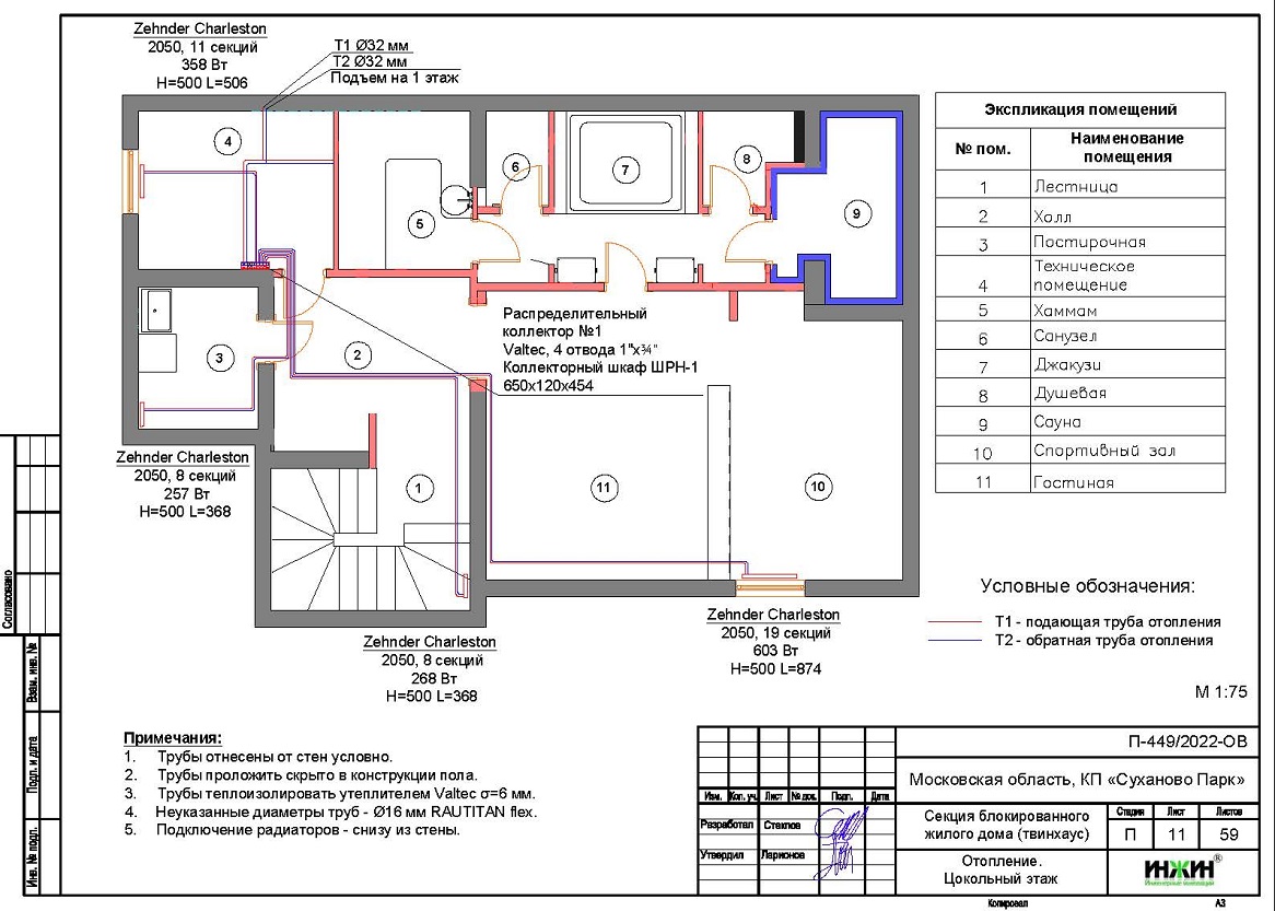 Объем проекта отопления, канализации и водоснабжения дома в г. Звенигород: 59 листов.