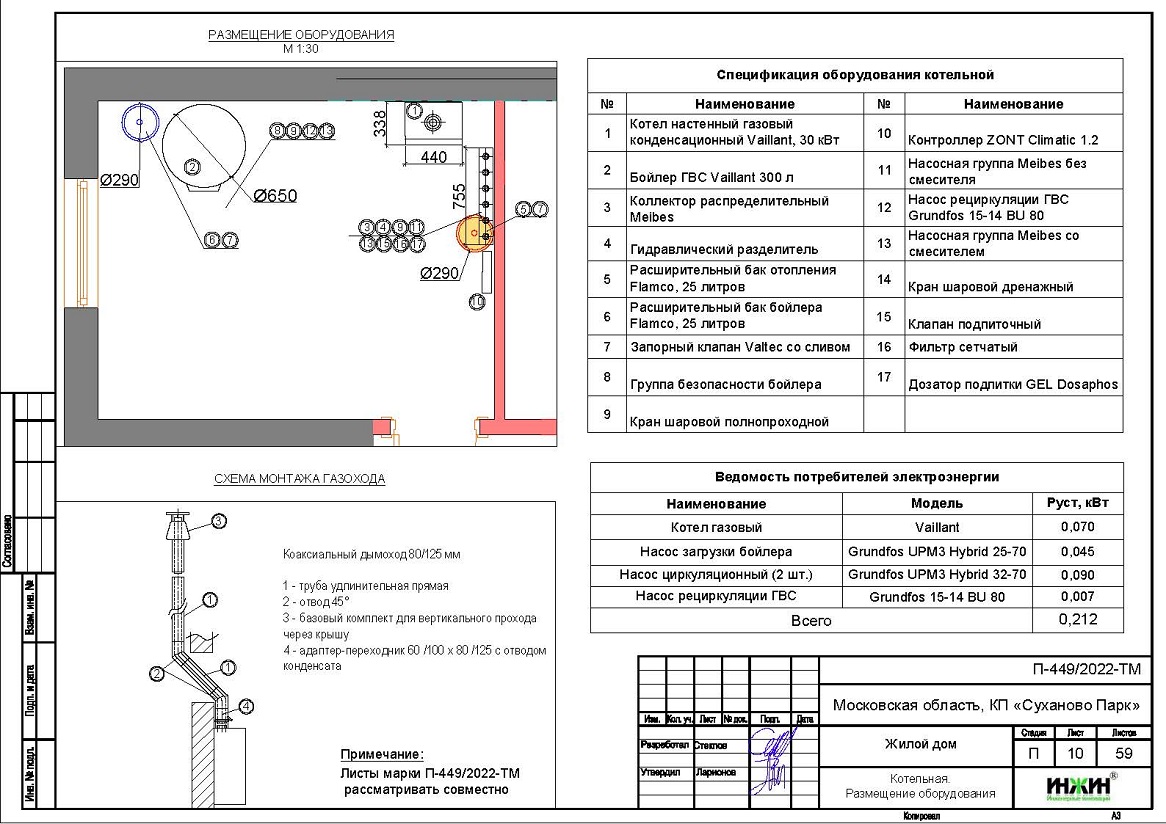 Состав проекта котельной, отопления, канализации и водоснабжения дома в КП "Суханово Парк":