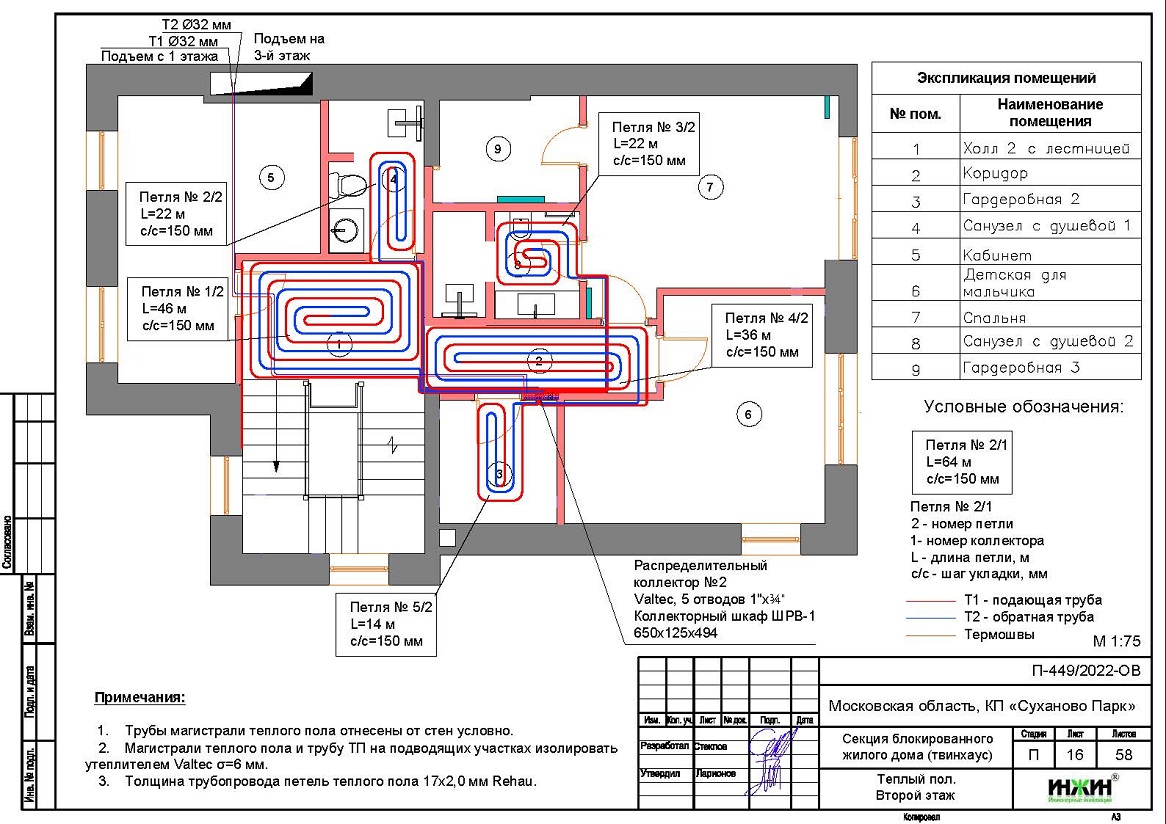 Водяной теплый пол дома в КП "Суханово Парк" (проект теплого пола).