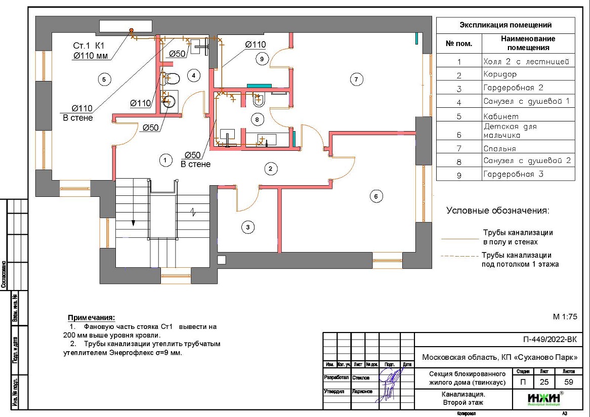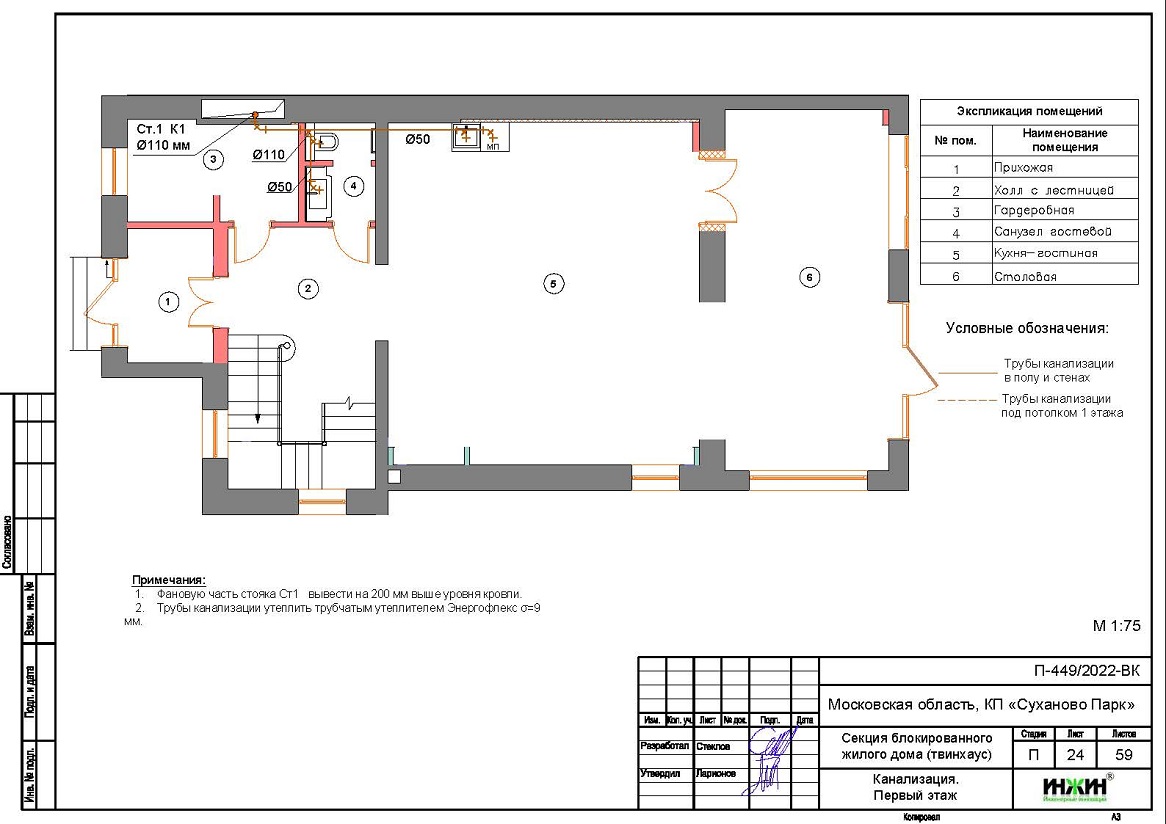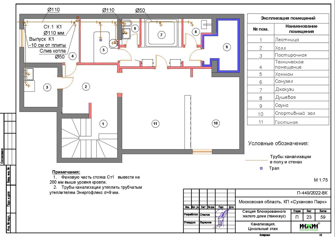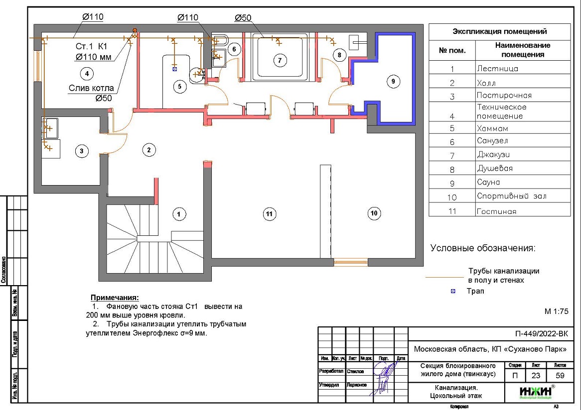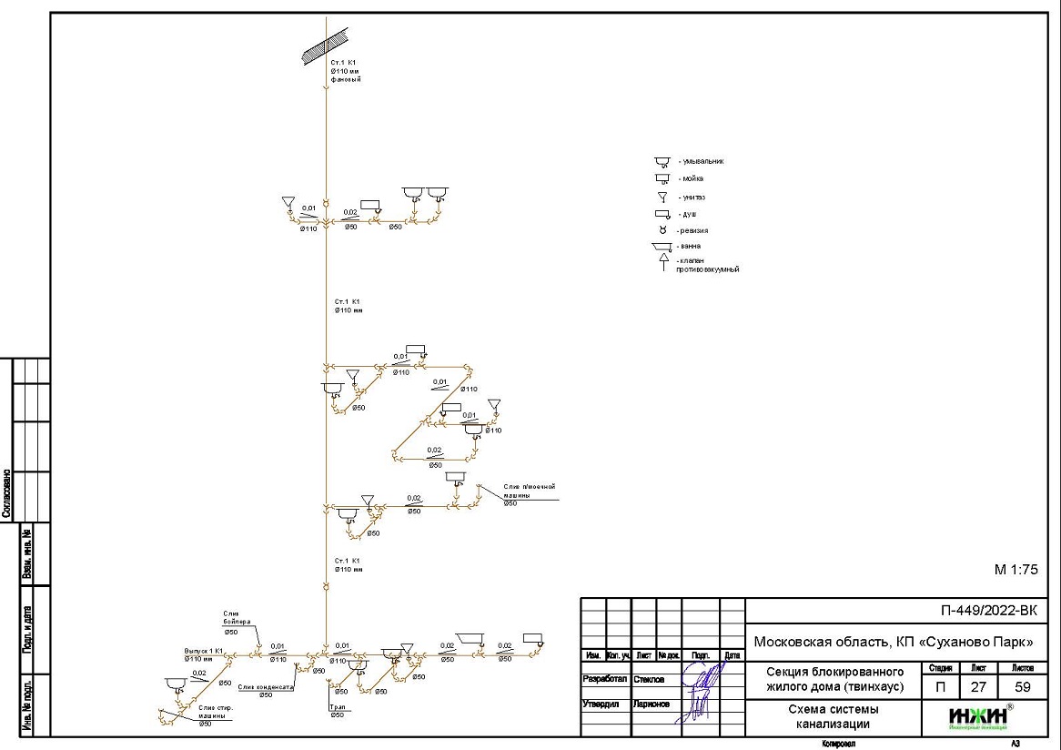 Внутренняя канализация (проект канализации) дома в КП "Суханово Парк".