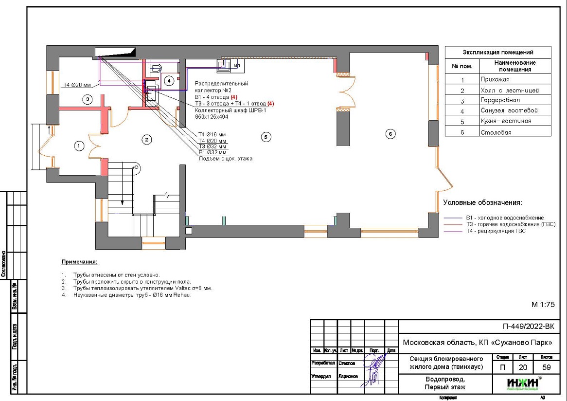 Внутренний водопровод дома в КП "Суханово Парк" (проект водоснабжения).