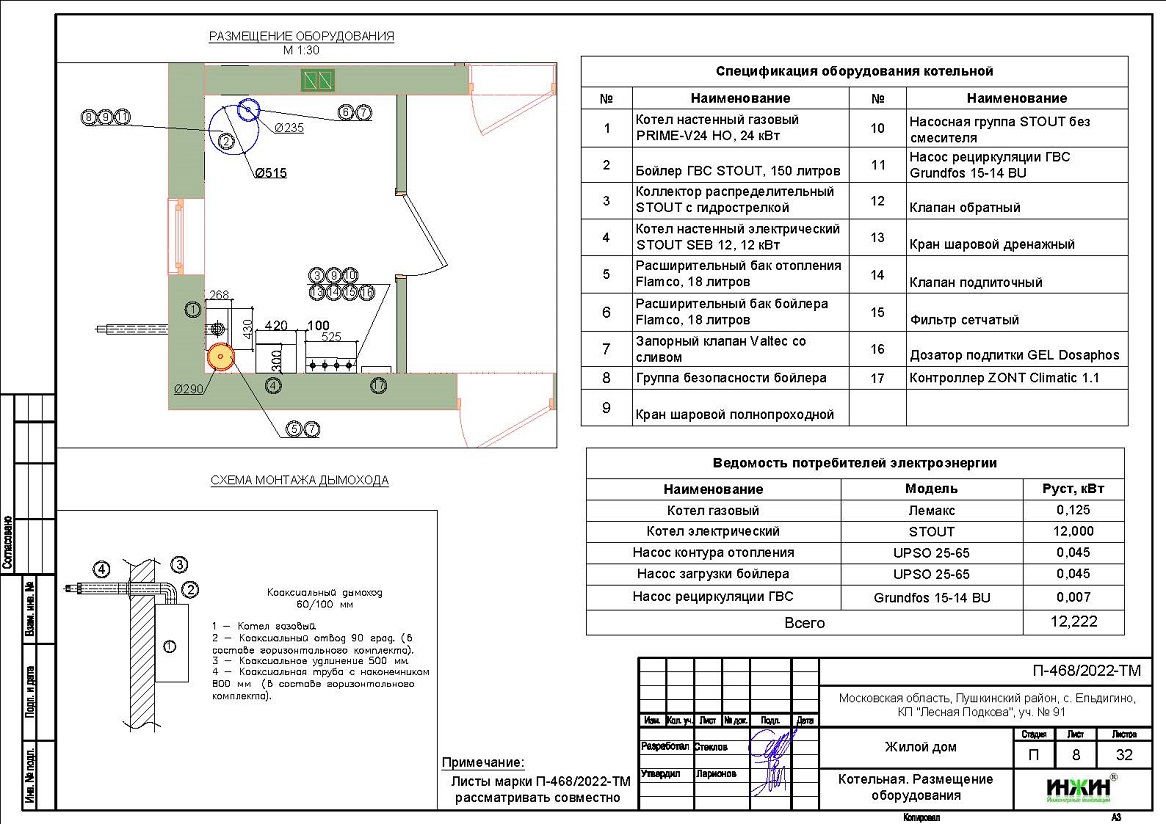 Состав проекта котельной, отопления и теплого пола дома в КП "Лесная Подкова":