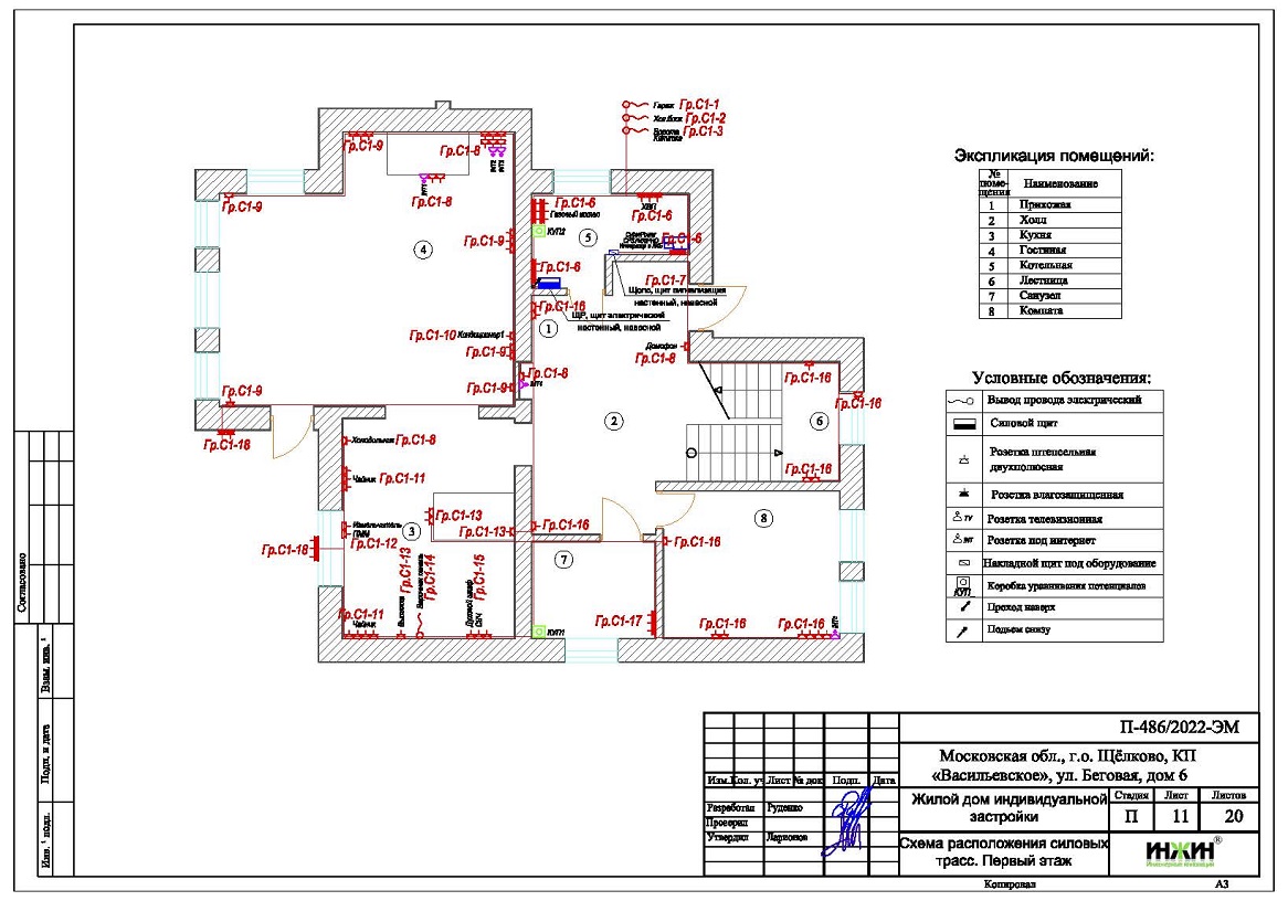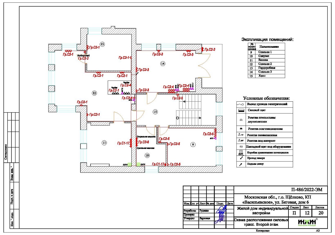Объем проекта электрики дома 220 м.кв.: 20 листов.