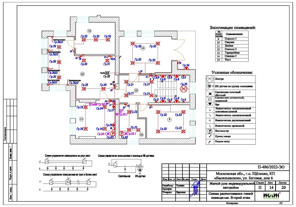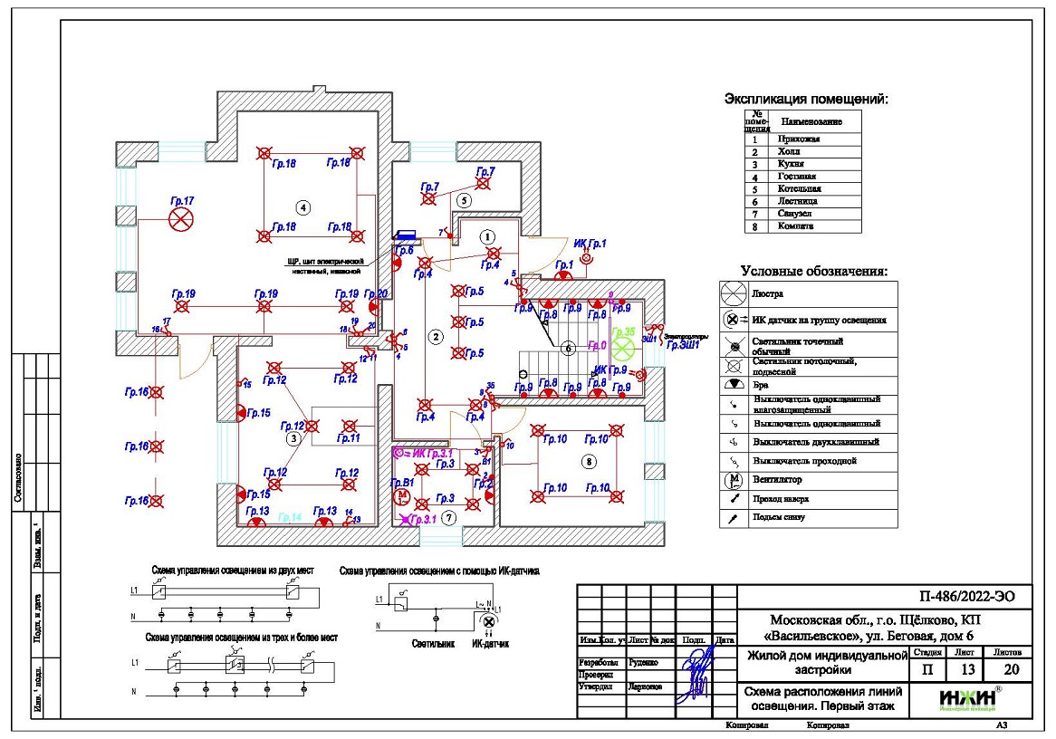 4. Чертежи групповых осветительных сетей дома в КП "Васильевское".