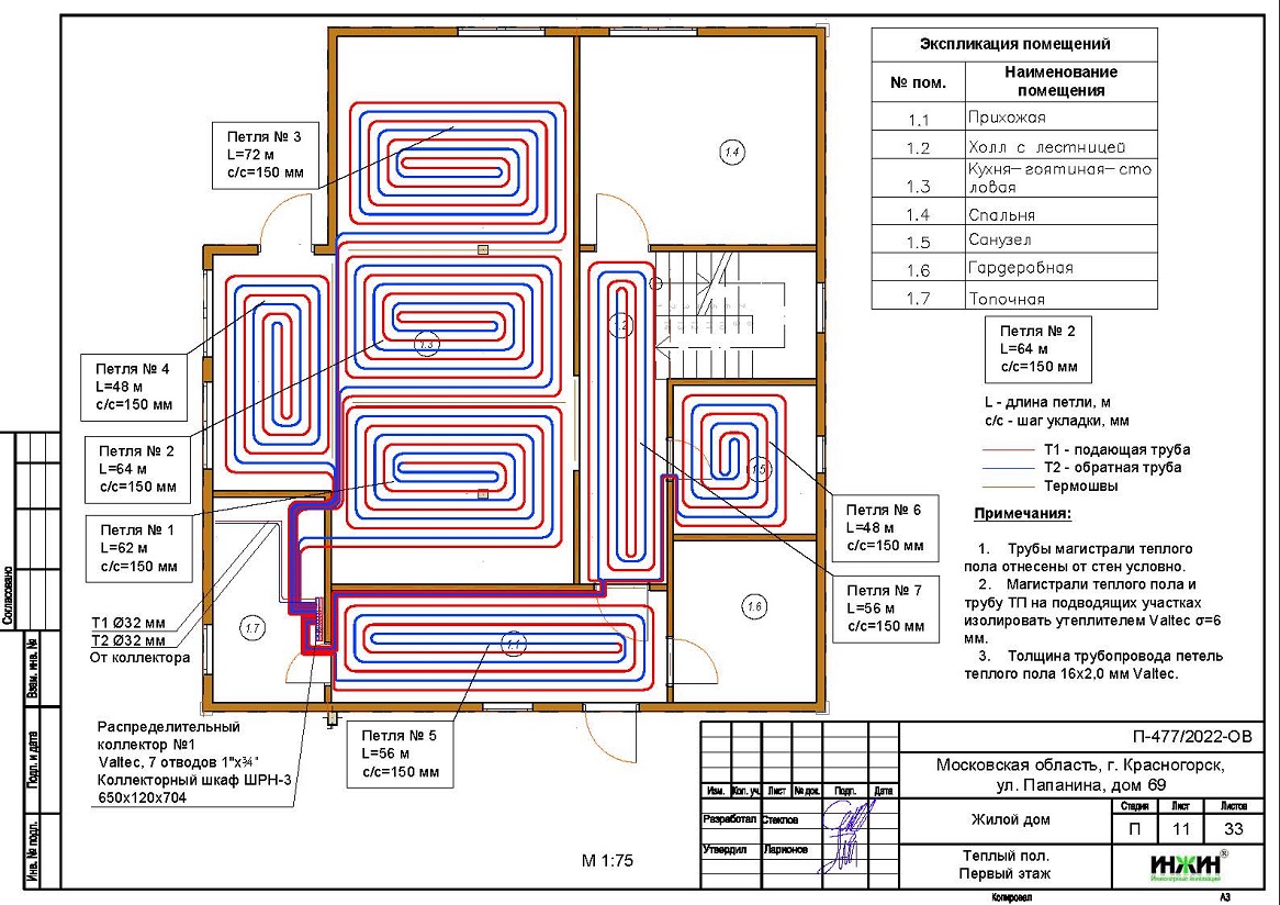 Водяной теплый пол дома в Красногорске (проект теплого пола).