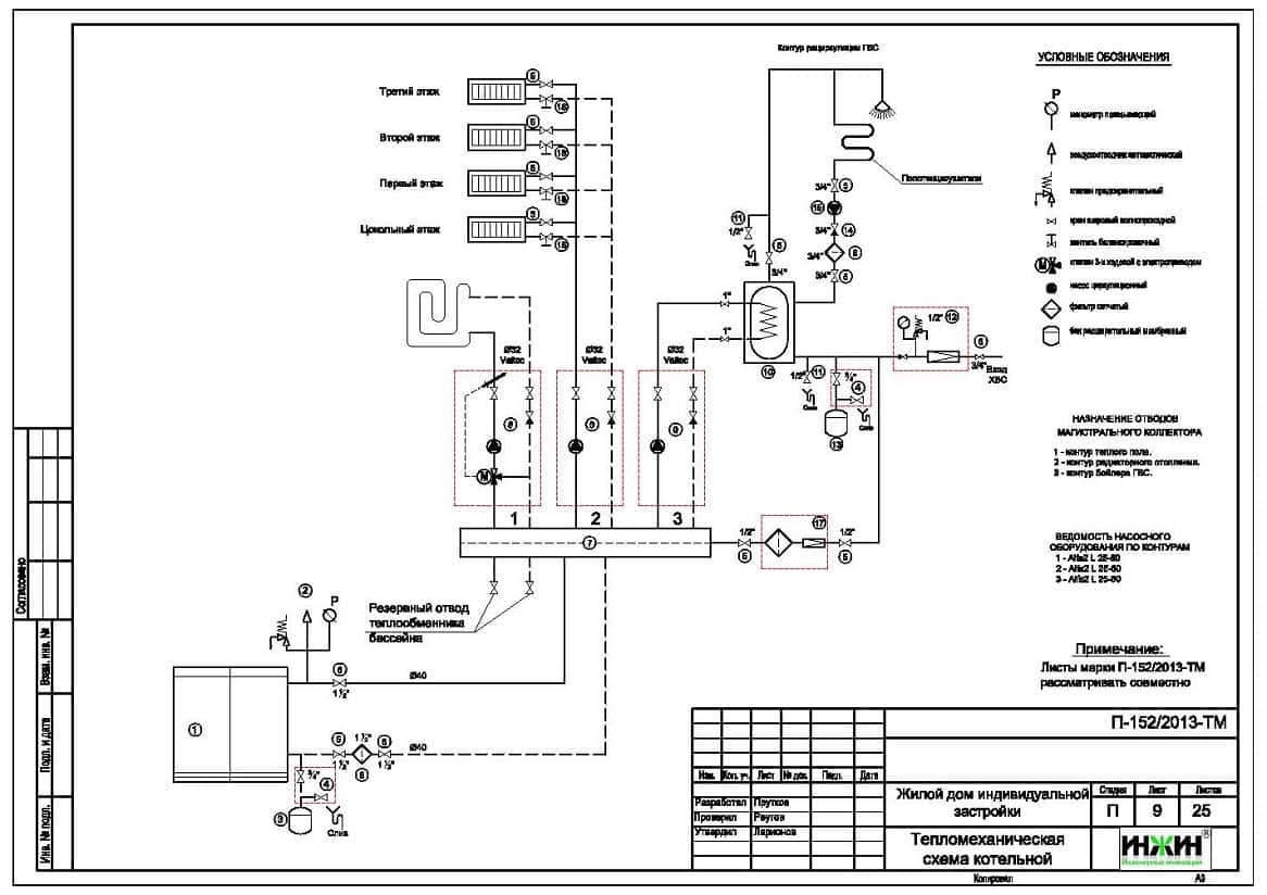 o Контуры котельной – отопление дома, горячее водоснабжение, водяной теплый пол и теплоснабжение бассейна;