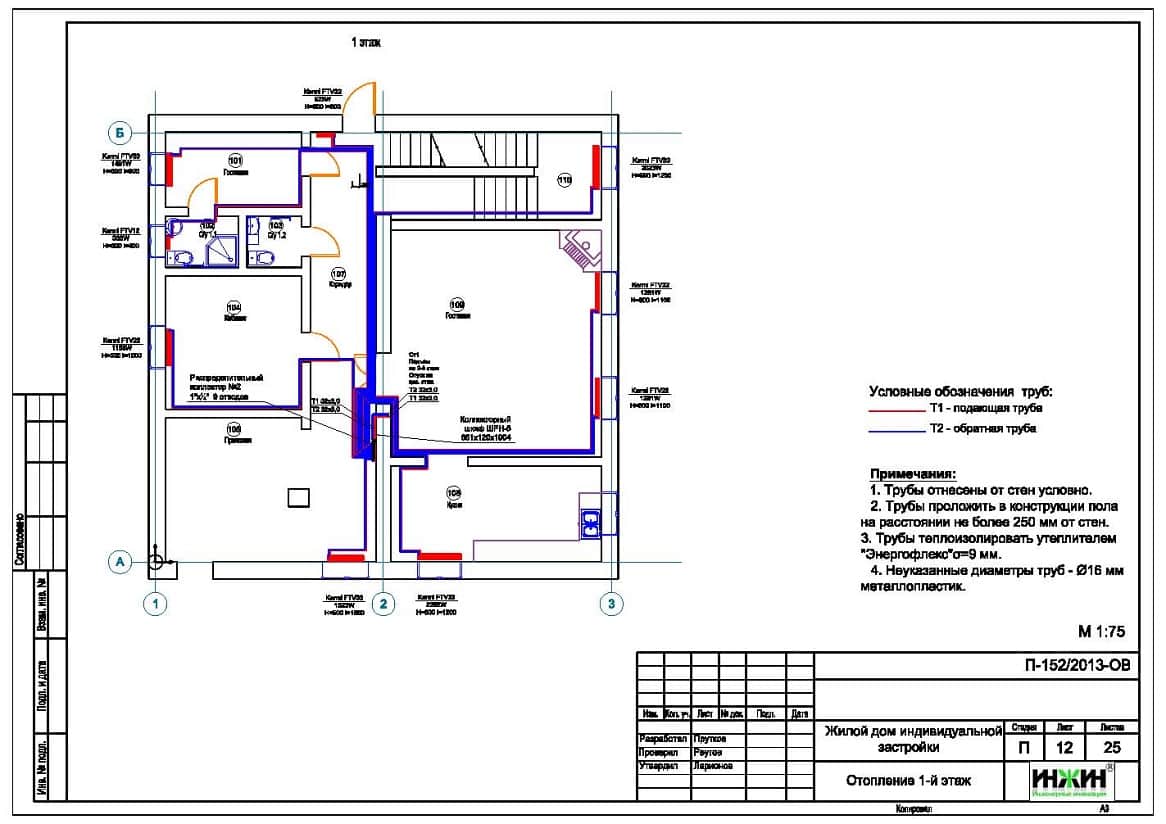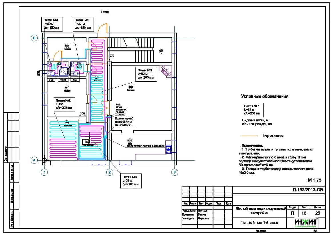 5. Комплект чертежей напольного отопления (теплого пола) жилого дома.