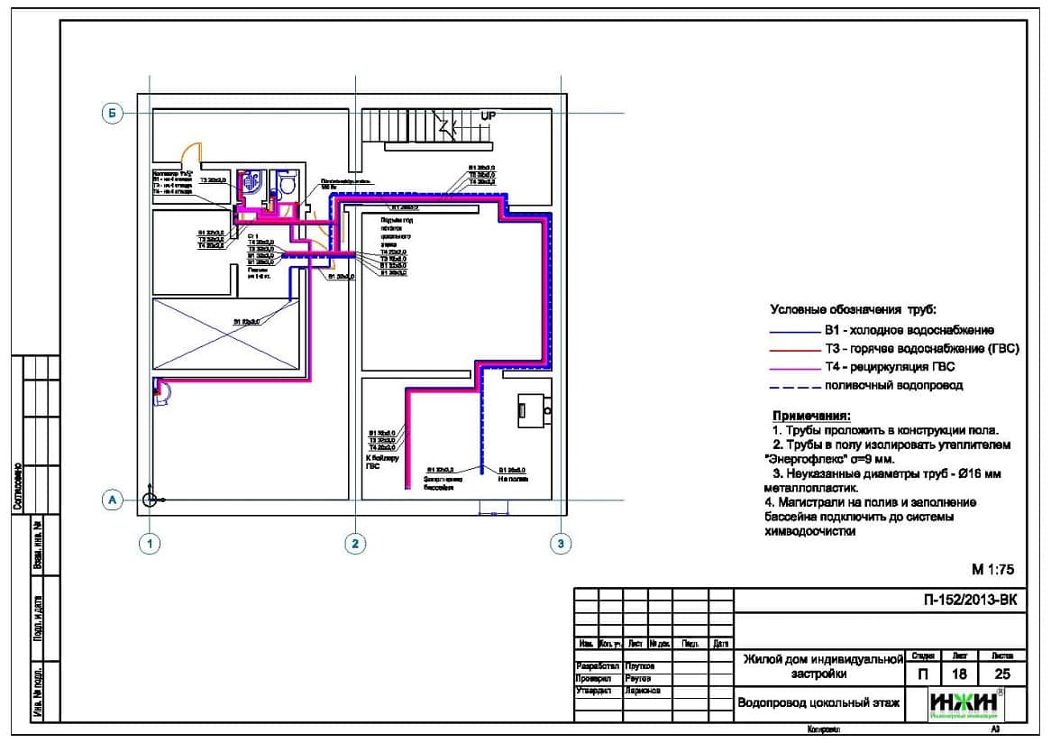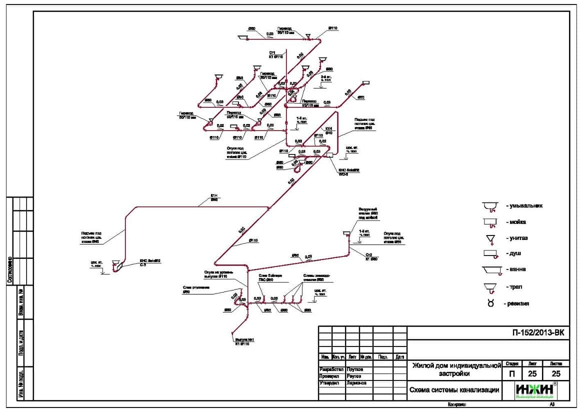 Состав проекта отопления, водоснабжения и канализации: