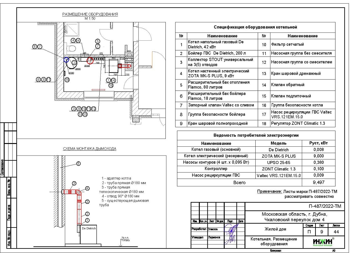 Состав проекта котельной, отопления, канализации и водоснабжения дома в г. Дубна: