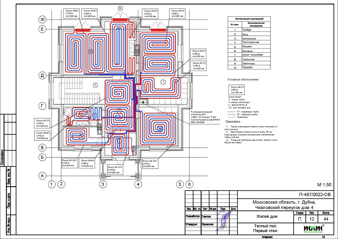 Водяной теплый пол дома в г. Дубна (проект теплого пола).
