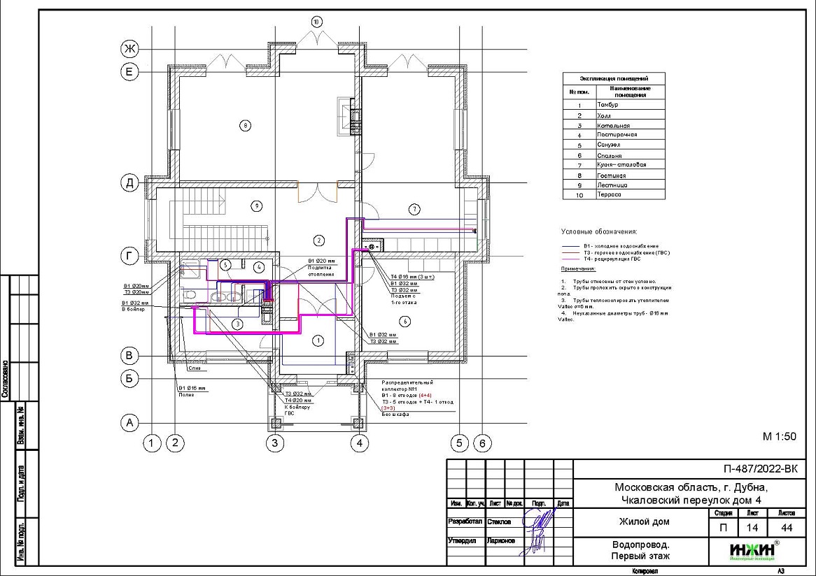 Внутренний водопровод дома в г. Дубна (проект водоснабжения).